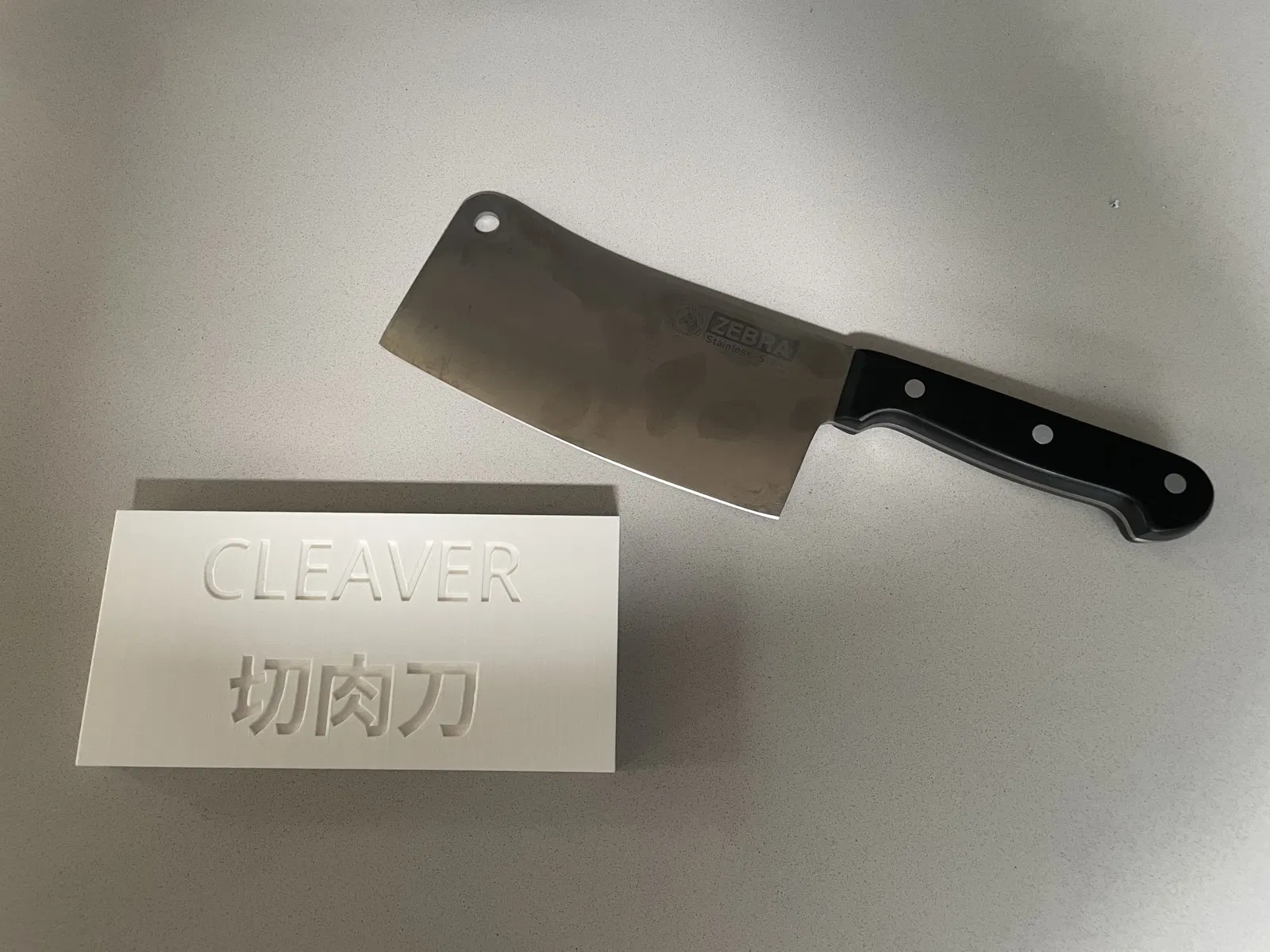 Đối với mục đích của chúng tôi, tôi đã thêm từ Cleaver và tương đương tiếng Quan Thoại (đơn giản hóa) ( 切肉刀 ) nhưng nếu ai đó quan tâm đến phiên bản không có chữ tiếng Anh và/hoặc chữ Trung Quốc, hãy cho tôi biết và tôi có thể tải lên những phiên bản đó.