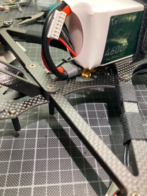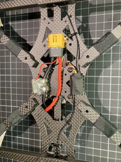 Để GPS-Positionhold hoạt động, bạn cần đi dây nguồn từ ESC luồn dưới khung, nằm giữa bottom plate và middle plate như trong hình.