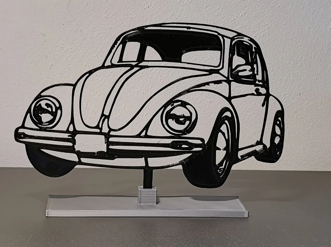 Nếu bạn là một người đam mê xe cổ, đặc biệt là dòng xe huyền thoại VW Beetle, thì chắc chắn không thể bỏ qua mẫu thiết kế "2D to 3D art" vô cùng tinh tế này. Đây là một tác phẩm mô phỏng lại những đường nét phác thảo đặc trưng của chiếc Beetle Classic, chuyển hóa từ dạng hình vẽ phẳng thành một vật thể trang trí 3D nổi bật. Món đồ này rất phù hợp để làm vật phẩm trang trí bàn làm việc, kệ sách hoặc góc sưu tầm các món đồ liên quan đến xe hơi của bạn.