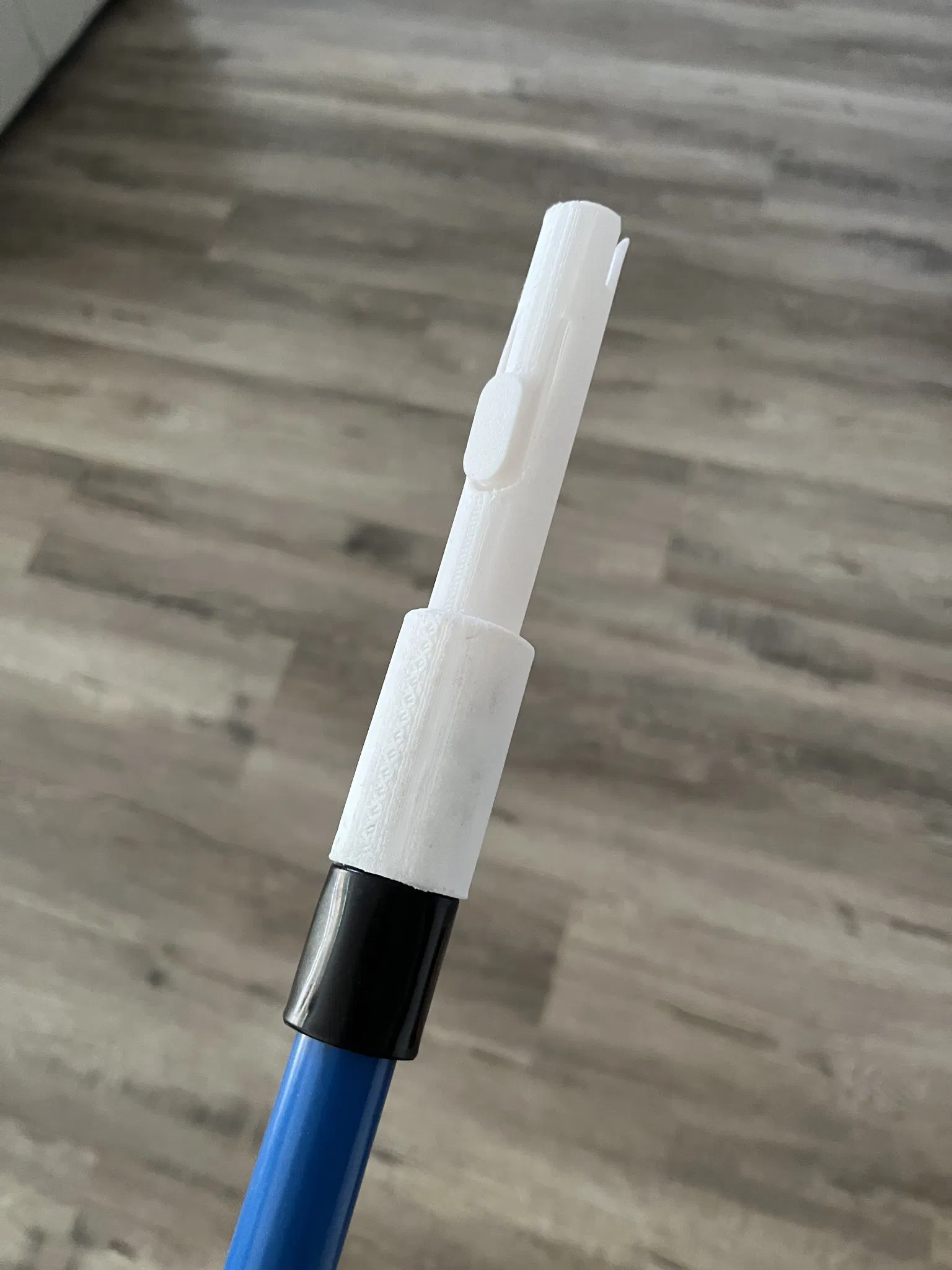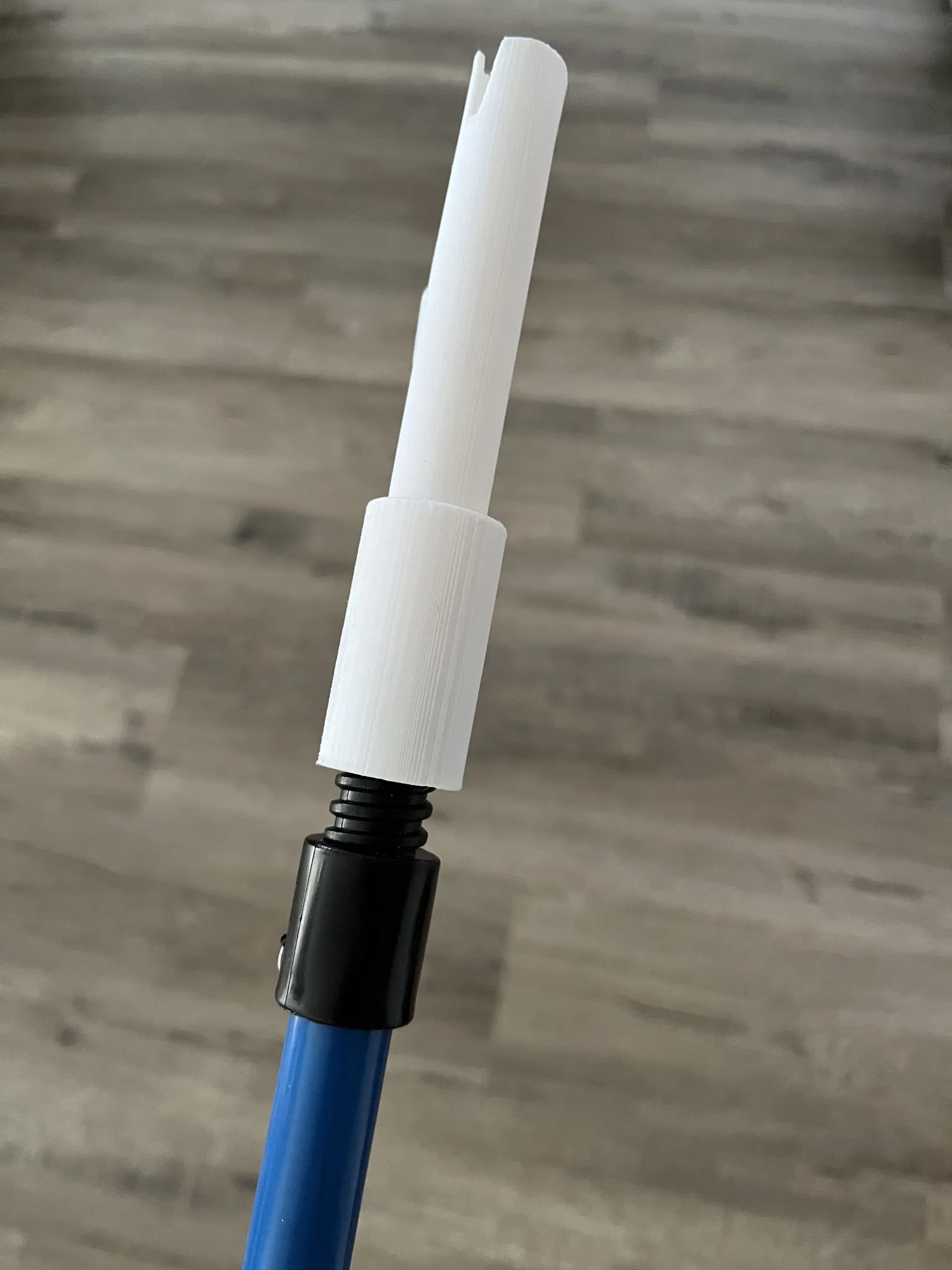 Cán nhôm kéo dài của tôi cho Hệ thống Dọn dẹp Muji đã bị nứt có thể do lực tác động quá mức lên cây. Tôi không muốn phải mua cái khác, vì tôi tin rằng nó sẽ lại nứt, vì vậy tôi quyết định tái sử dụng cây vẽ của mình với ren chổi ACME ¾-5".