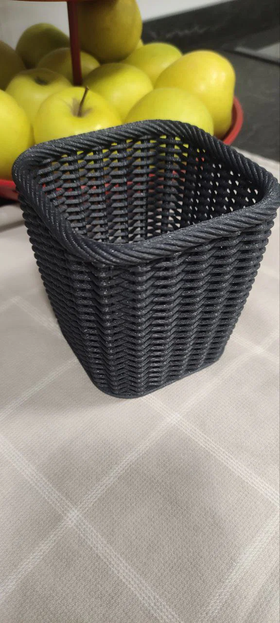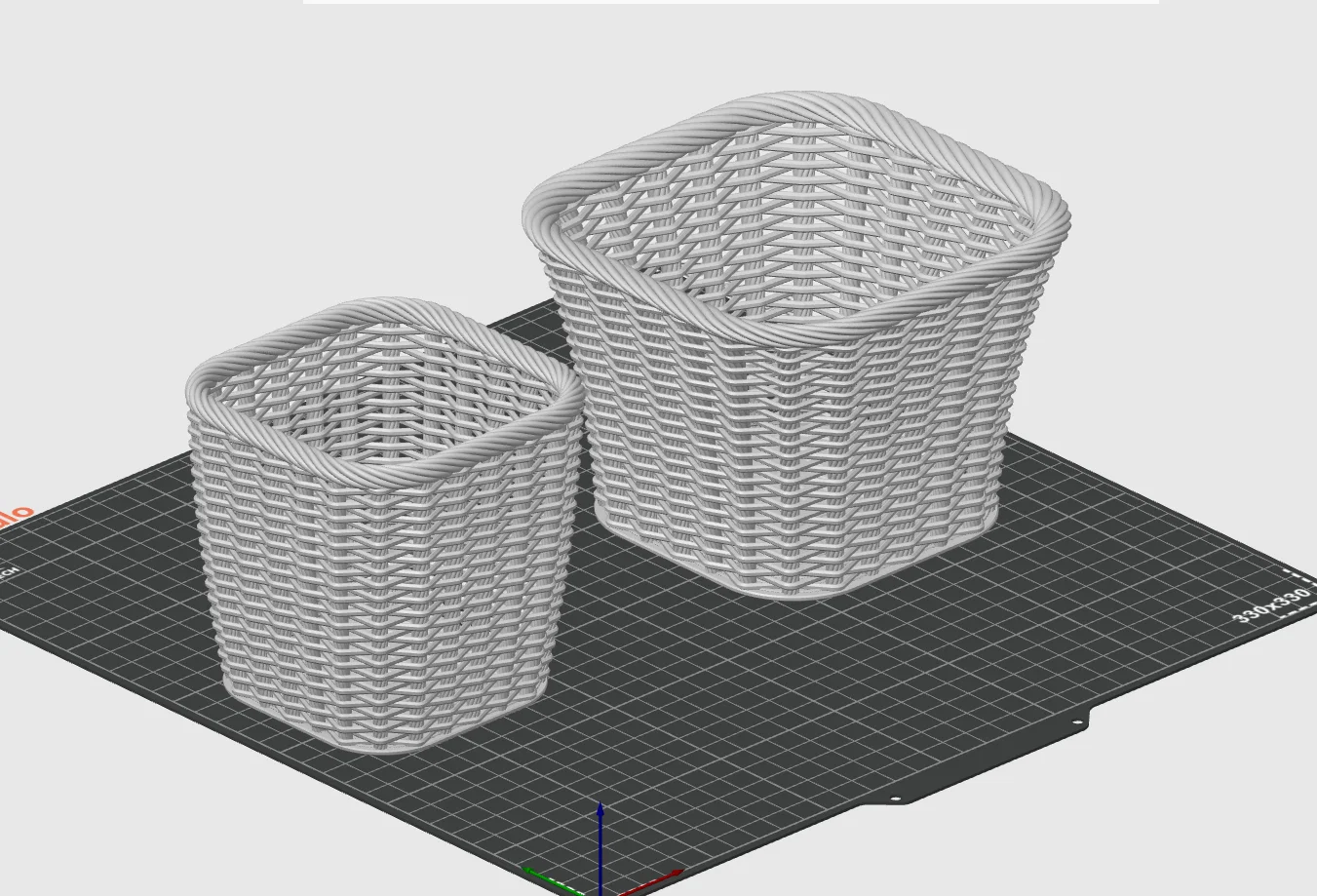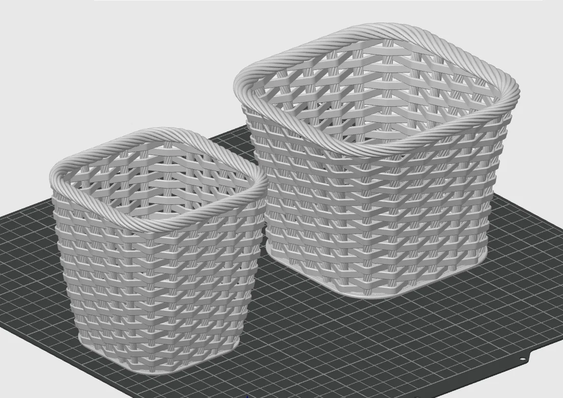 Bộ giỏ mây đan Zigzag gồm 2 cấu hình với 3 kiểu dáng khác nhau (tổng 6 mẫu), kích thước khoảng 100x100x100. Có bản thường cao 5 mm và bản mỏng 2.5 mm. File mới ở định dạng 3MF.