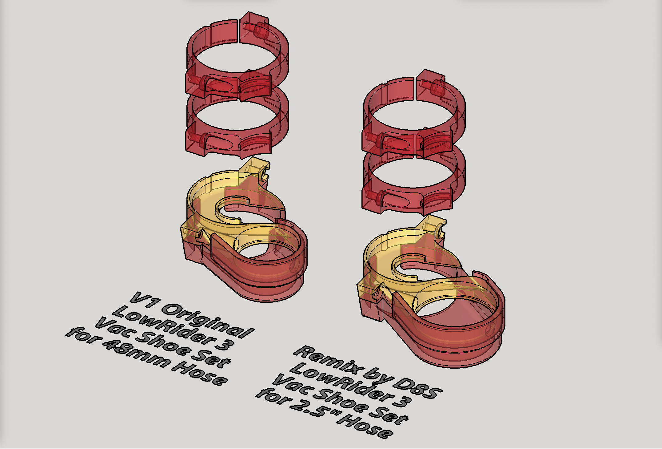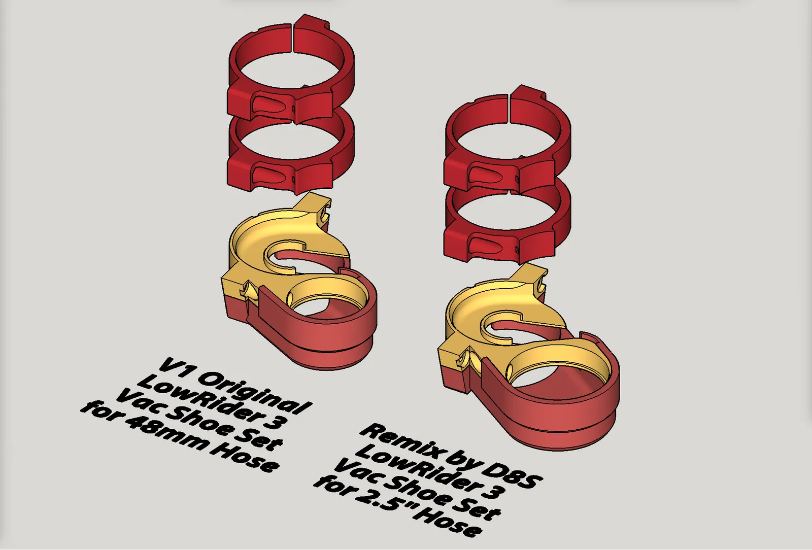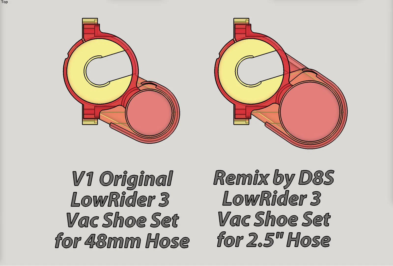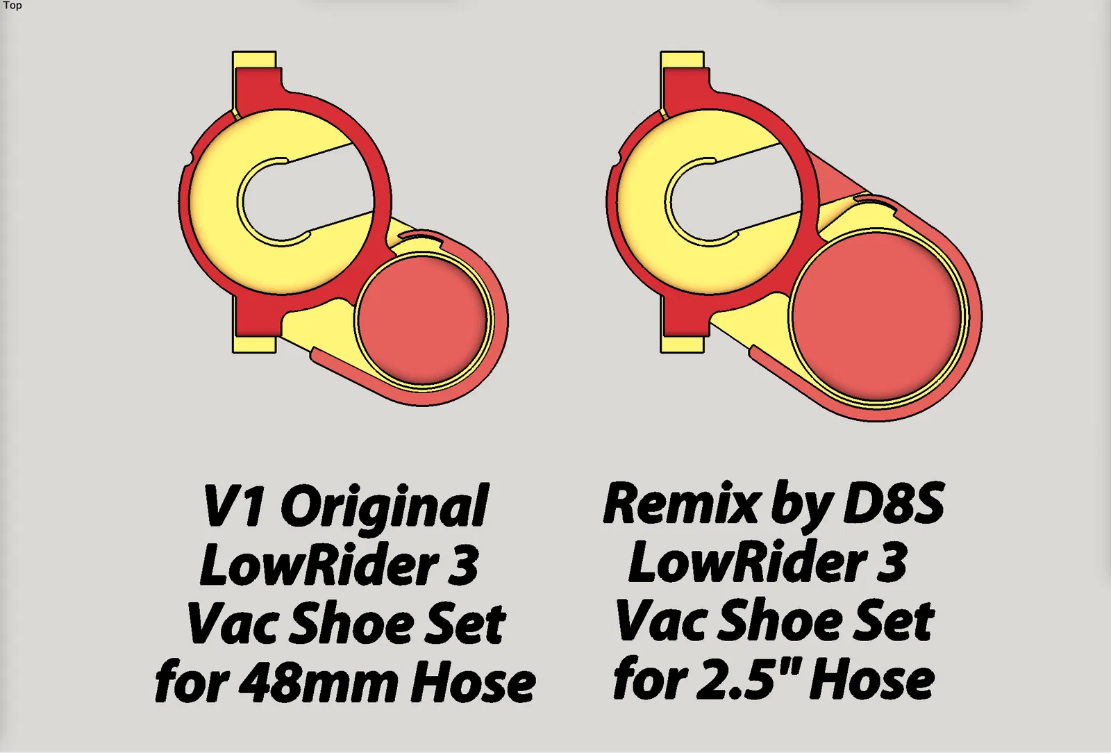 Đây là bản remix cho LowRider 3 CNC, giúp ống hút bụi 2.5" vừa vặn. Bản sửa đổi giữ nguyên phong cách của bản gốc nhưng thay đổi kích thước ống hút. Bao gồm hướng dẫn in ấn và FAQ chi tiết về các thay đổi.