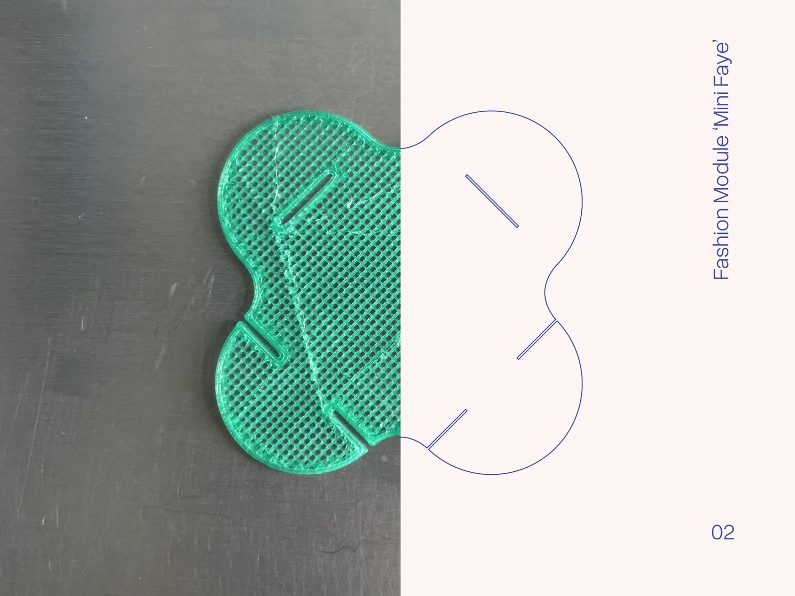 “Lego lace” dạng module phẳng in 3D, có thể lặp lại theo lưới vuông và đan xen để tạo thành textile/fabric với kích thước tùy ý. Mỗi module 2.5×2.5 cm, tối ưu để in TPU.
