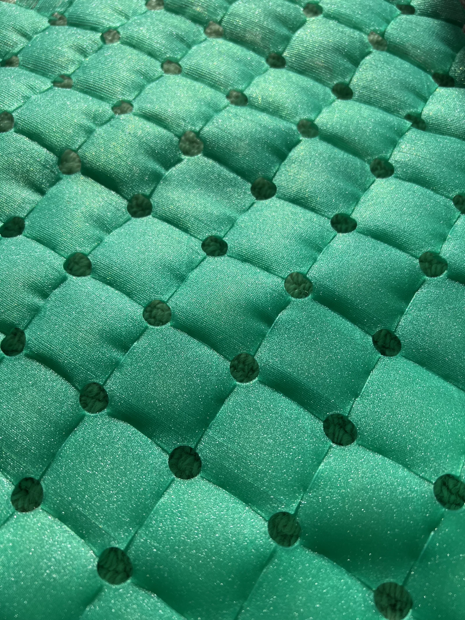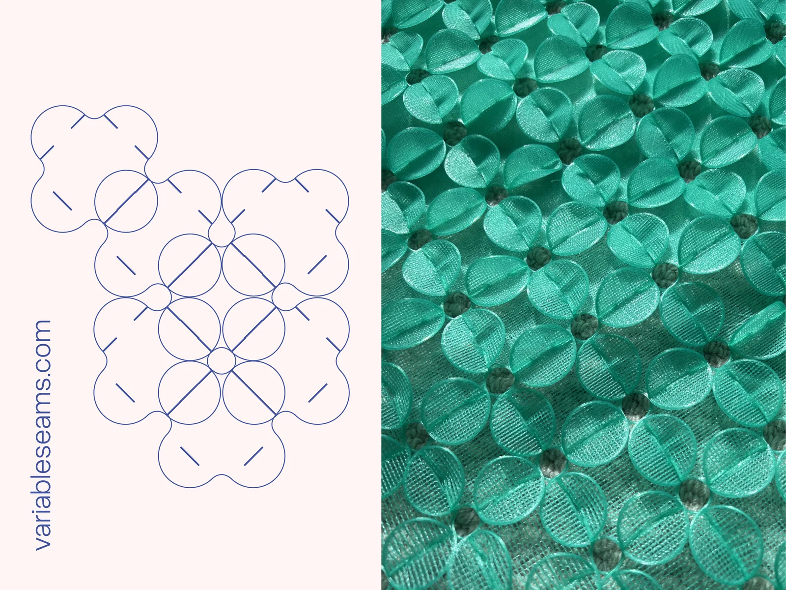 Module này có thể lặp lại theo dạng lưới vuông. Để lắp thành tấm fabric bằng cách đan phần “mũi tên” của module thứ nhất xuyên qua lỗ của module thứ hai. Cứ tiếp tục đan như vậy cho tới kích thước bạn muốn.