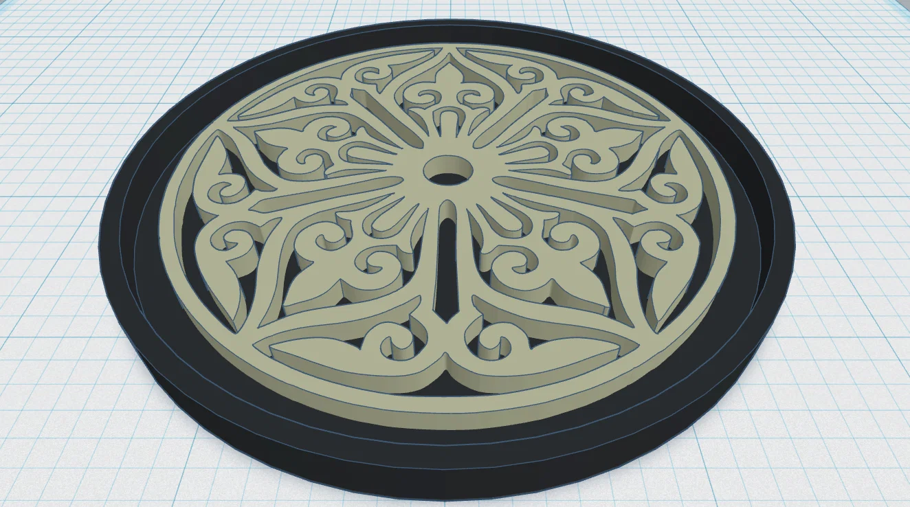 Mẫu lót ly Gothic Rose Window Coaster 30 lấy cảm hứng từ cửa sổ hoa hồng (rose window) trong kiến trúc Gothic. Thiết kế dạng tròn với họa tiết tracery/mullions đặc trưng, hợp in 3D làm coaster trang trí.