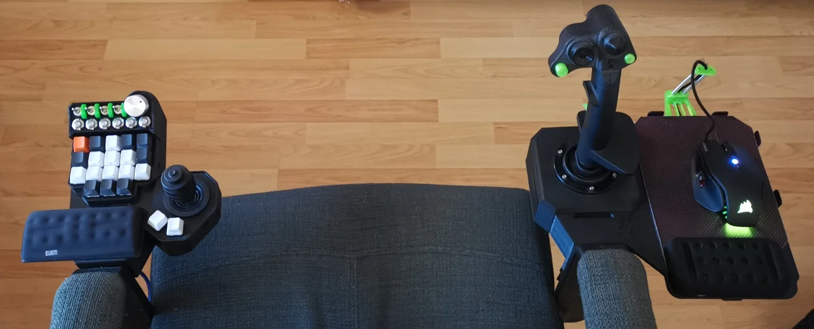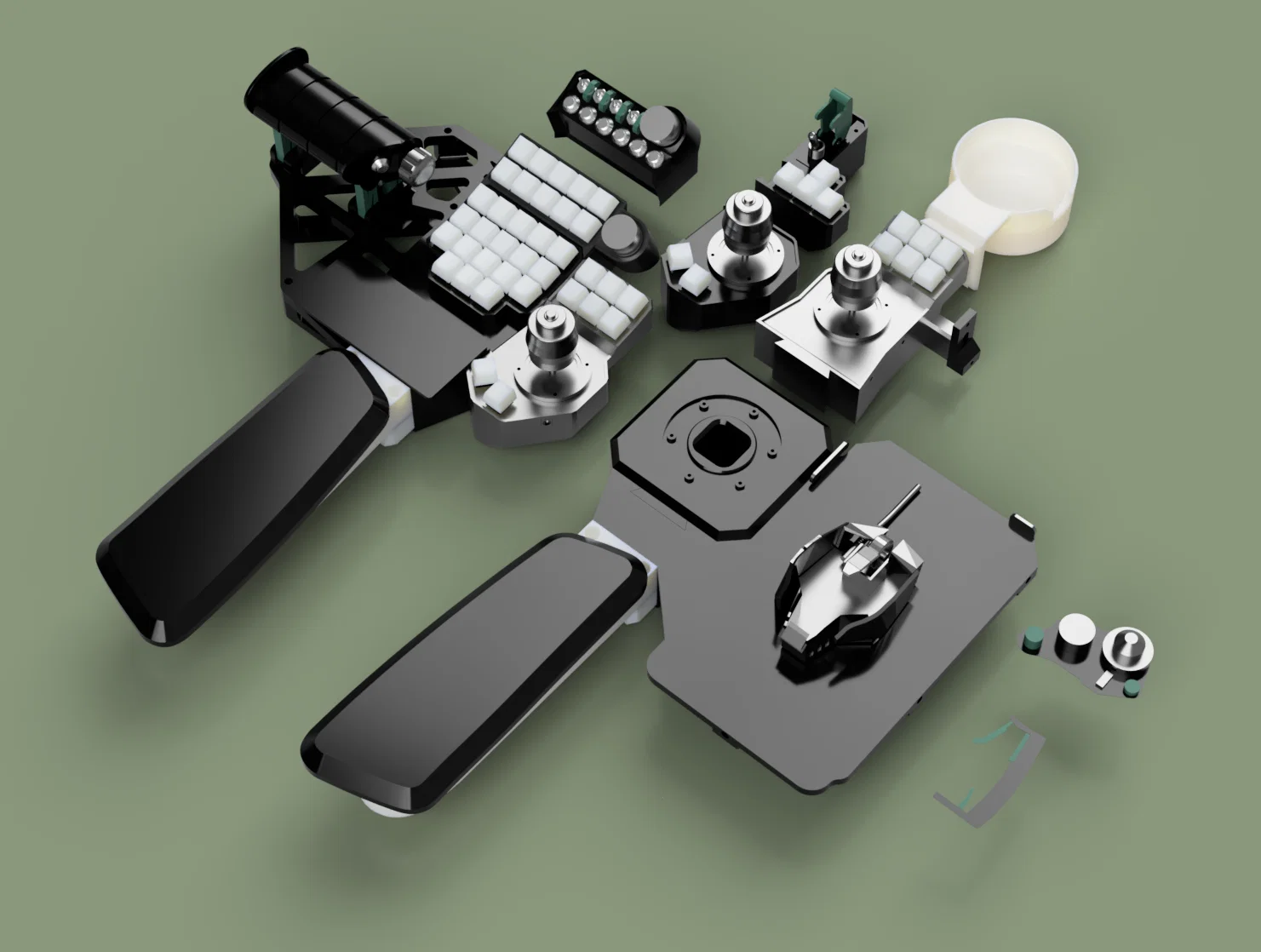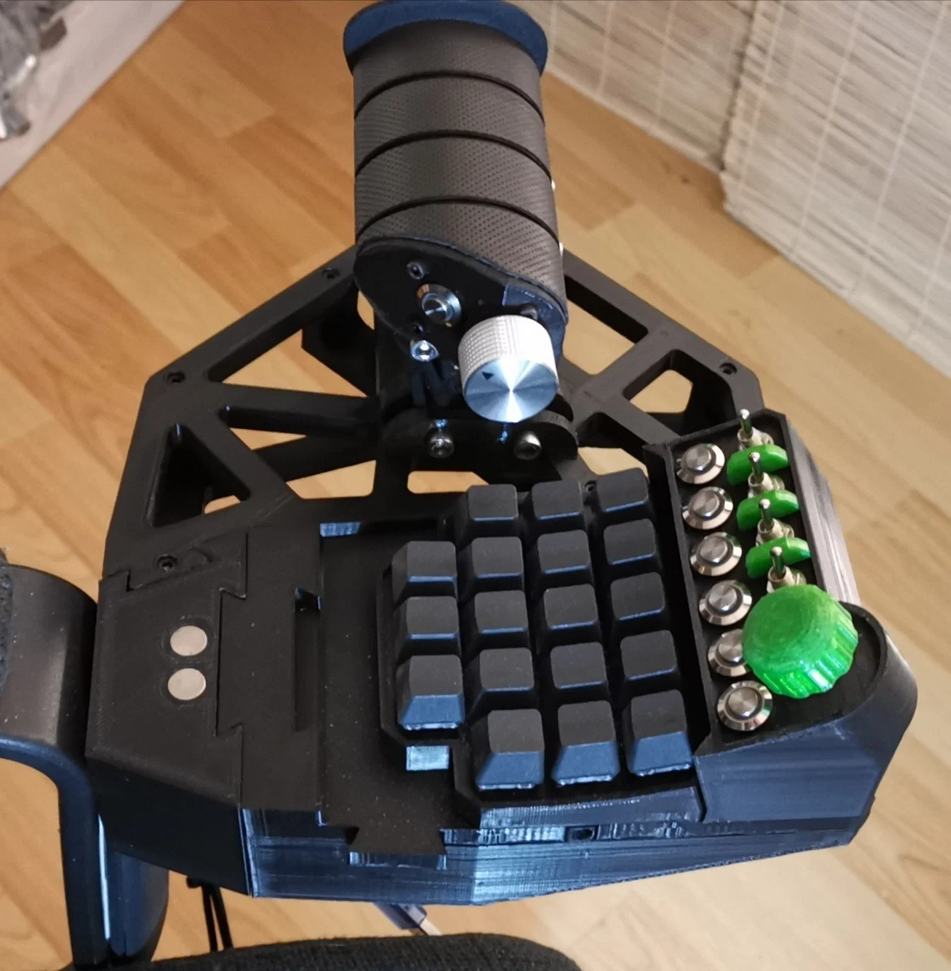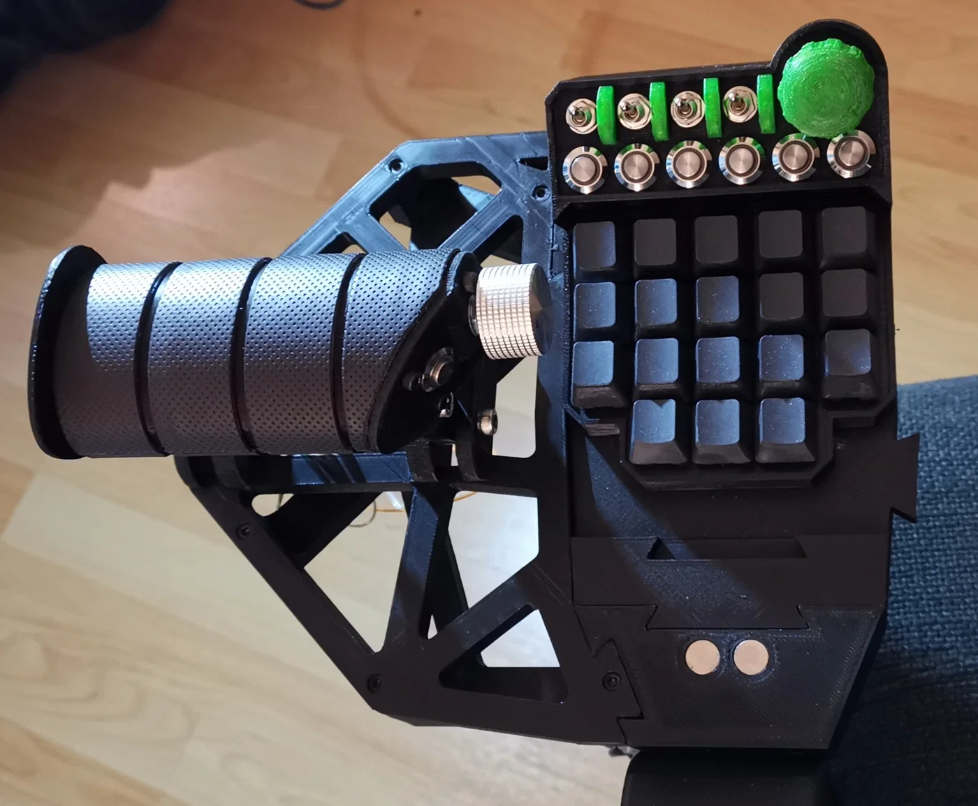 - hiện có thêm 3 addon cho ngón cái bên trái: 2 cái làm với mục tiêu StarCitizen (dĩ nhiên chơi game nào cũng được; joystick nhỏ cũng rất hợp cho mấy game kiểu farming), cái còn lại cho Helldivers2 và thiên về “đồ chơi” hơn