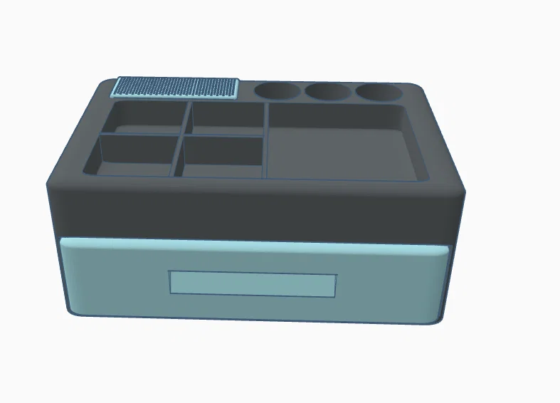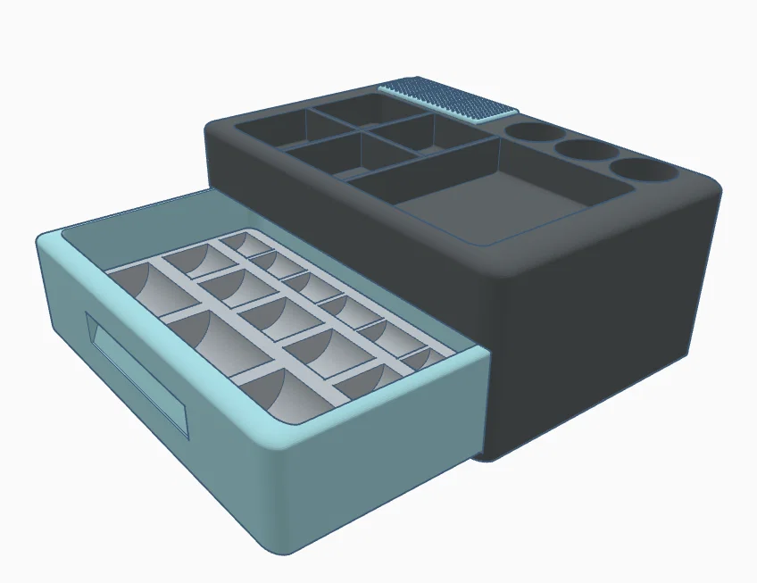 Trong ngăn kéo có một khay rời (in riêng) được đo kích thước sẵn cho các cuộn chỉ, bạn có thể dùng hoặc không tùy nhu cầu. Ngoài ra còn có một giá cắm kim rời để cắm kim may. Nếu bạn gặp vấn đề gì khi in, làm ơn cho mình biết nhé :]. Cảm ơn!