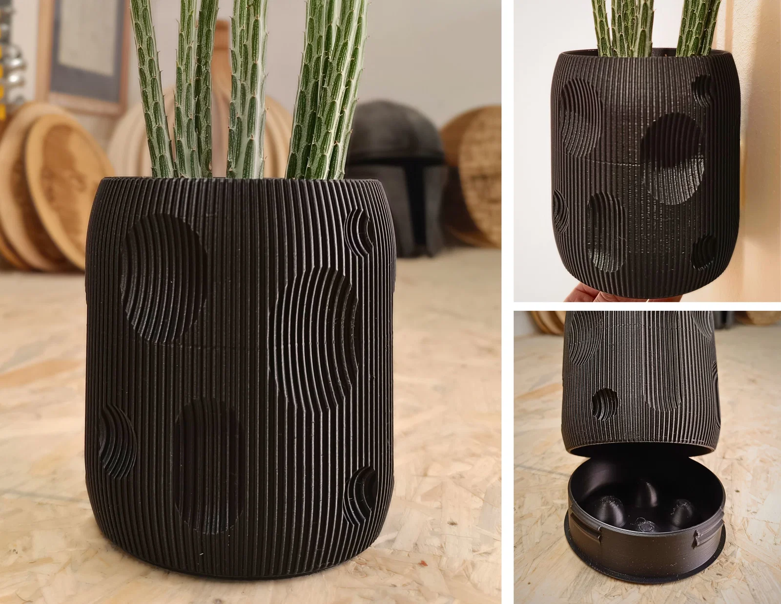 Mình đã nghe theo góp ý của mọi người và thiết kế lại hoàn toàn cơ chế thoát nước/nhỏ giọt. Từ giờ sẽ không còn đường phân tách trên bề mặt bên ngoài nữa, trừ khi hoa văn của chậu cho phép/đòi hỏi điều đó. Bạn thấy cơ chế này sao? Mình đã test và tinh chỉnh dung sai trên máy A1 Mini của mình; cho mình biết nếu trên các máy in khác nó cũng hoạt động ổn nha.