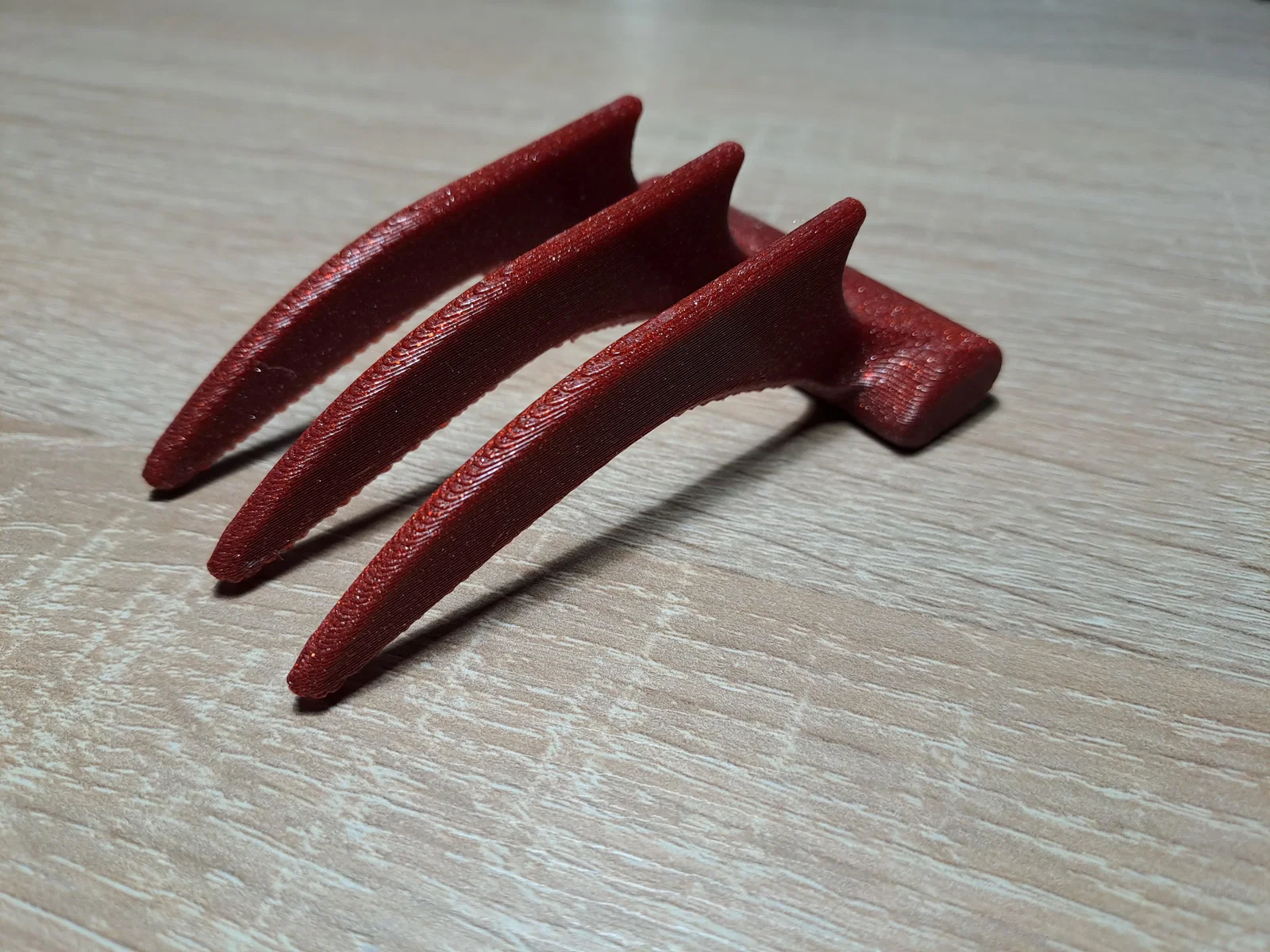 Mẫu móng vuốt Wolverine cho trẻ em, có thể chỉnh kích thước theo tay bé trong slicer. Khuyến nghị in kèm supports dưới phần móng, không cần hậu xử lý. Tác giả in bằng PETG và dùng chơi nhiều ngày vẫn an toàn tương đối.