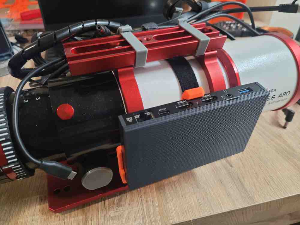 Một mô hình cho phép bạn gắn MeLE Quieter3Q của bạn ở bất kỳ hướng nào. Hệ thống rãnh và giữ chặt có nghĩa là bạn có thể nhanh chóng lắp đặt và tháo rời mini-pc. Nó được thiết kế để tôi có thể rất dễ dàng di chuyển giữa các thiết lập nhiếp ảnh thiên văn của mình.