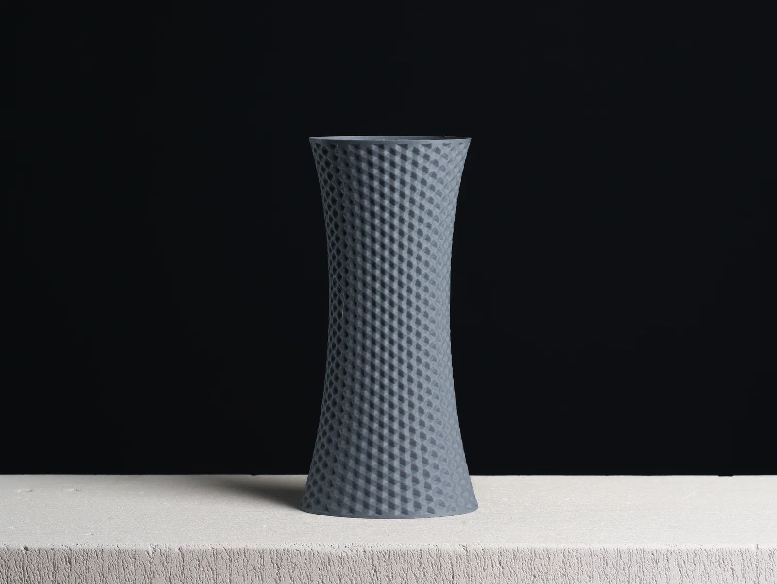 Bình trang trí dáng elip với texture lục giác, tối ưu để in vase mode. In nhanh, đứng vững, bắt sáng đẹp, hợp cắm hoa khô/cỏ pampas. Có thể in layer mỏng/dày, đẹp cả với vật liệu trong mờ.