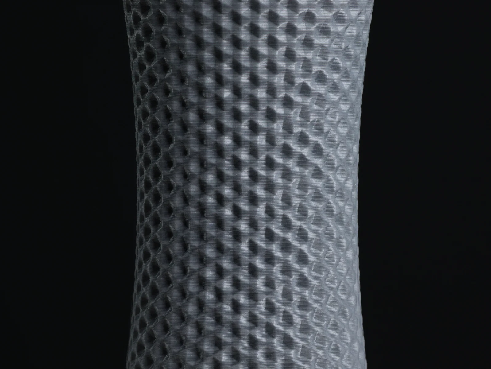 Bề mặt texture lục giác phản ứng với ánh sáng theo cách rất riêng. Ánh sáng sẽ tạo bóng đổ trong các ô lục giác tùy theo góc chiếu. Bạn có thể in bình với layer mỏng hoặc dày. Mẫu này cũng lên rất đẹp nếu dùng vật liệu trong mờ.
