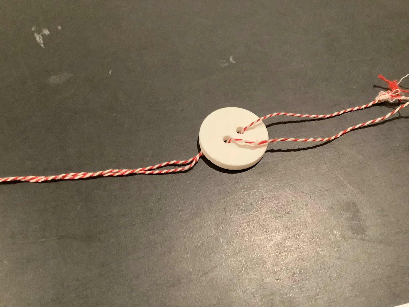 Một phiên bản in 3D của một món đồ chơi cổ điển. Đưa sợi dây qua cả hai lỗ và buộc một nút, sau đó quay một chút và kéo chặt, sau đó nới lỏng một chút và kéo chặt lại. Lặp lại quá trình này càng lâu càng tốt!