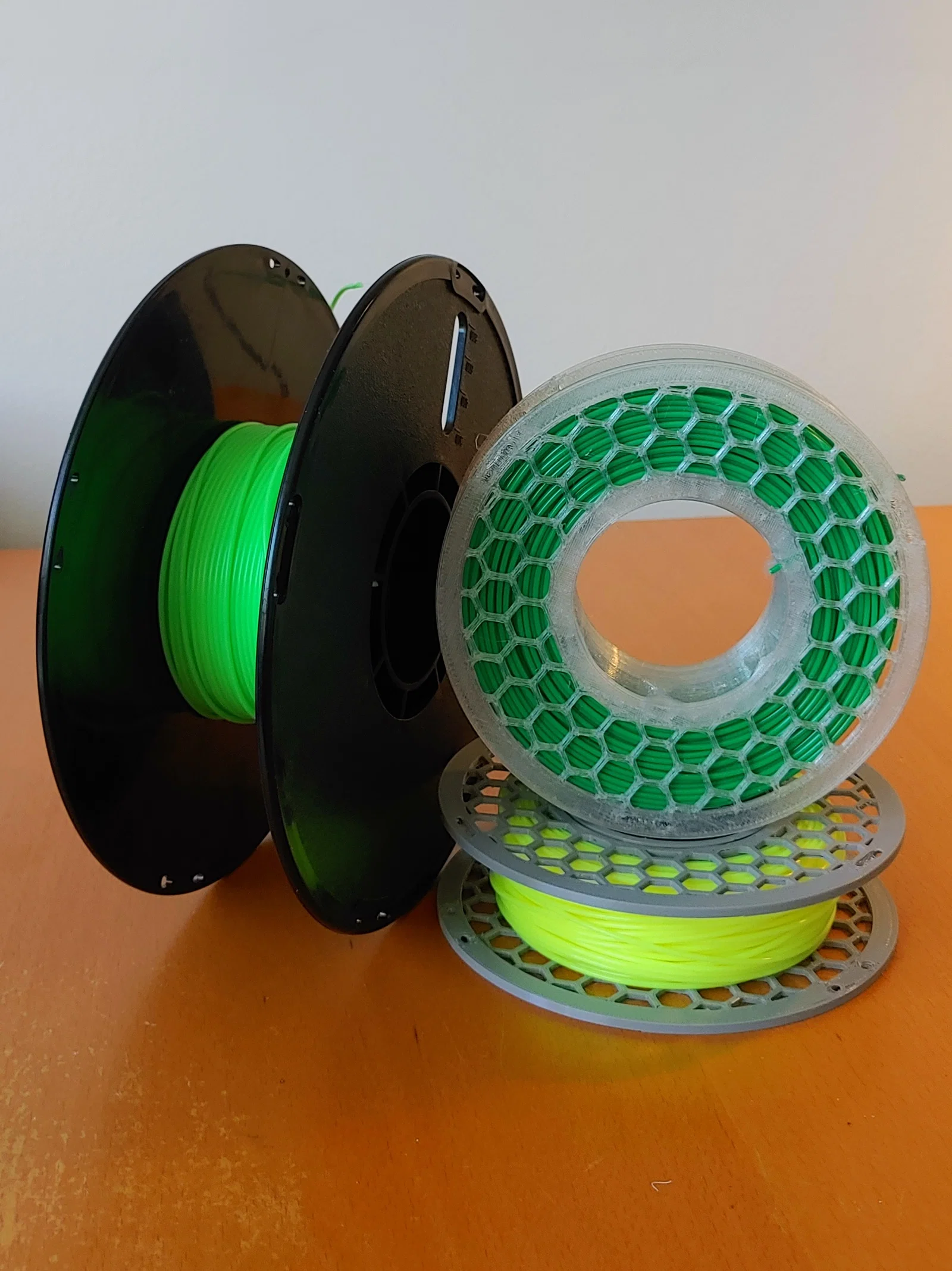 Mua đủ cuộn 1kg mỗi màu cho từng máy in thì tốn kém lắm. Cuộn ra 250g cho mỗi máy bạn cần chạy cùng lúc. Tiny Spool.
