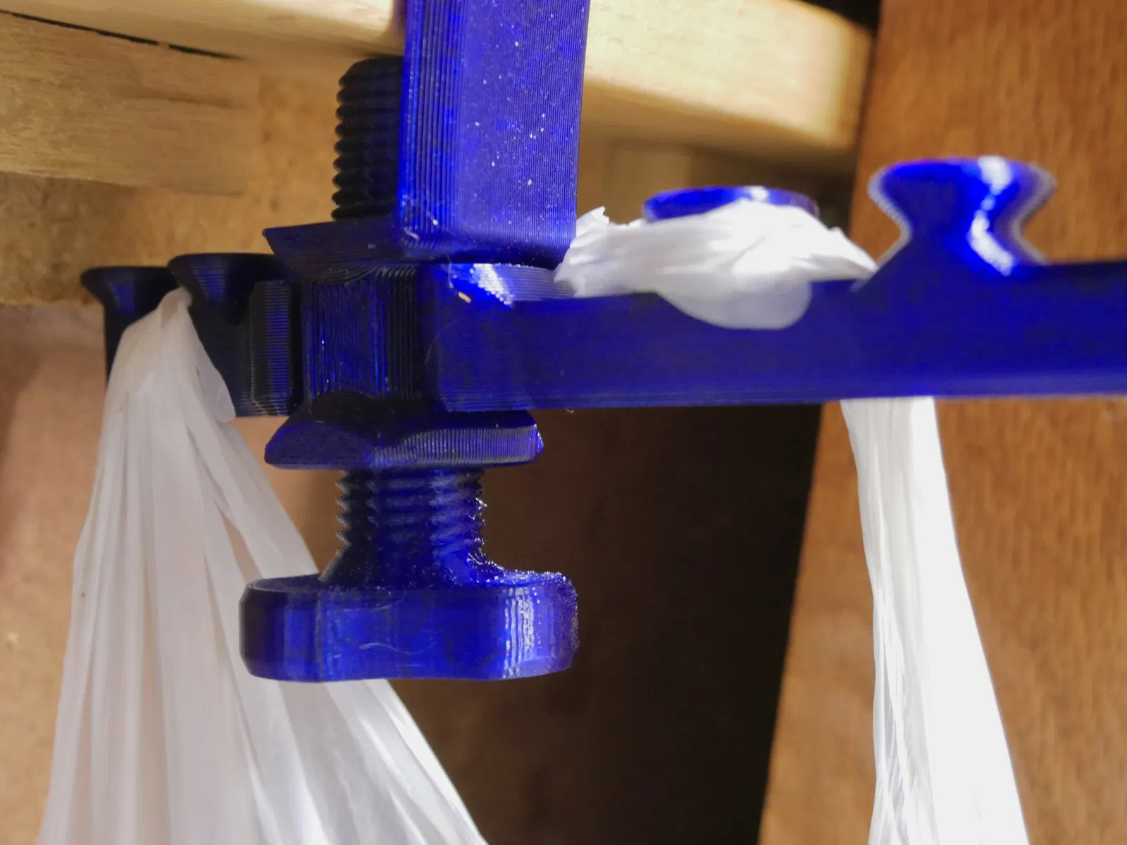 Đây là một phiên bản remix của giá đỡ túi rác thân thiện với môi trường bởi rin_ofumi thay thế ốc vít nguyên bản bằng một ốc vặn tay. Bởi vì tôi thường di chuyển các giá đỡ, điều này cho phép lắp đặt mà không cần tuốc-nơ-vít.