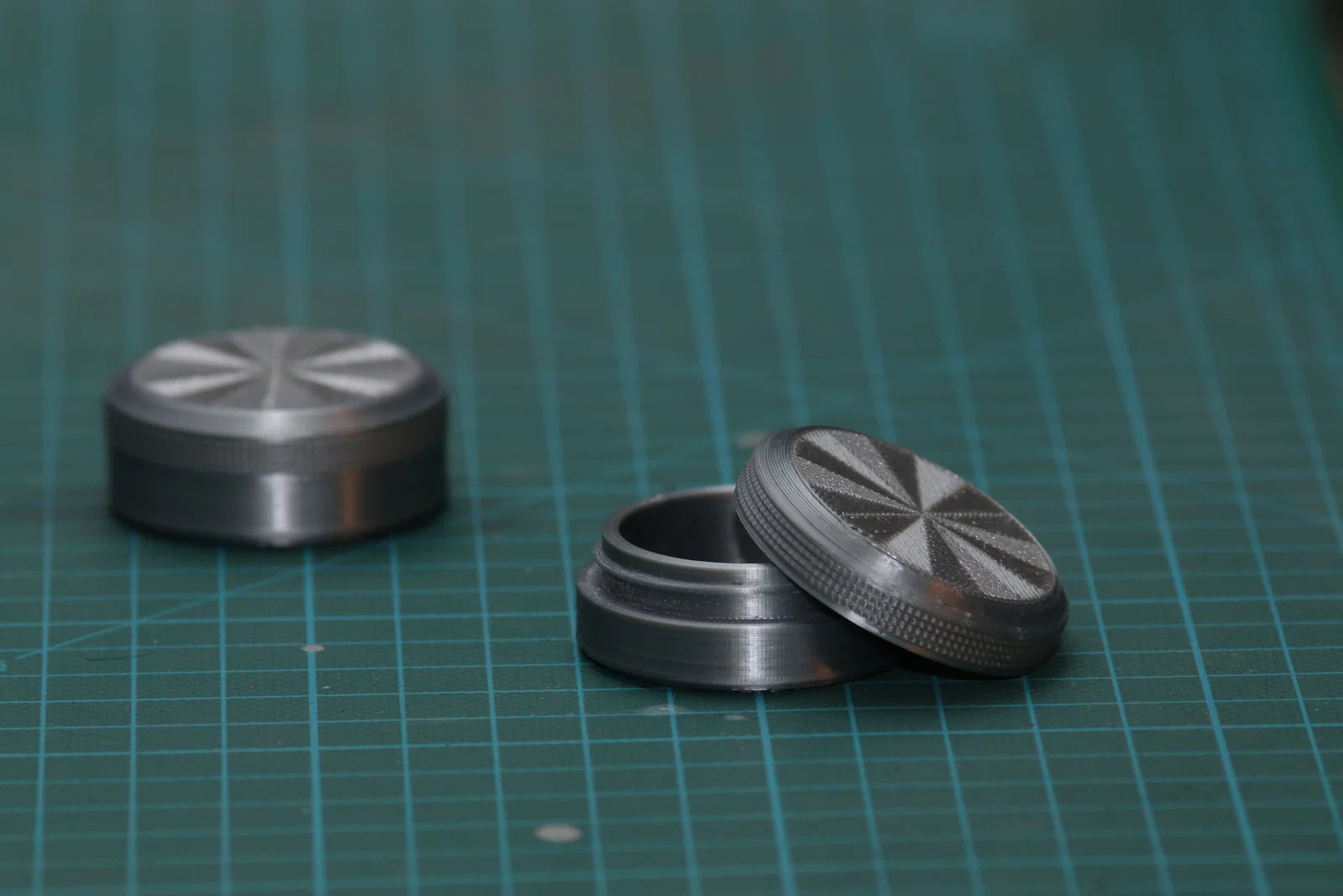 Một cái hũ nhỏ để đựng vài món đồ. Có các hũ bề rộng 30mm và 60mm. Dòng 30mm có chiều cao 15, 20 và 25mm. Dòng bề rộng 60mm có chiều cao 20, 30 và 40mm. Sau khi in xong, bạn nên vặn hũ và nắp qua lại vài lần rồi lau sạch phần ren bằng khăn giấy vài lượt, để “mài” ren vào khớp và vặn cho mượt. Càng vặn lâu thì càng trơn mượt. Nếu bạn không vặn được nắp, thử in nắp to hơn một chút.