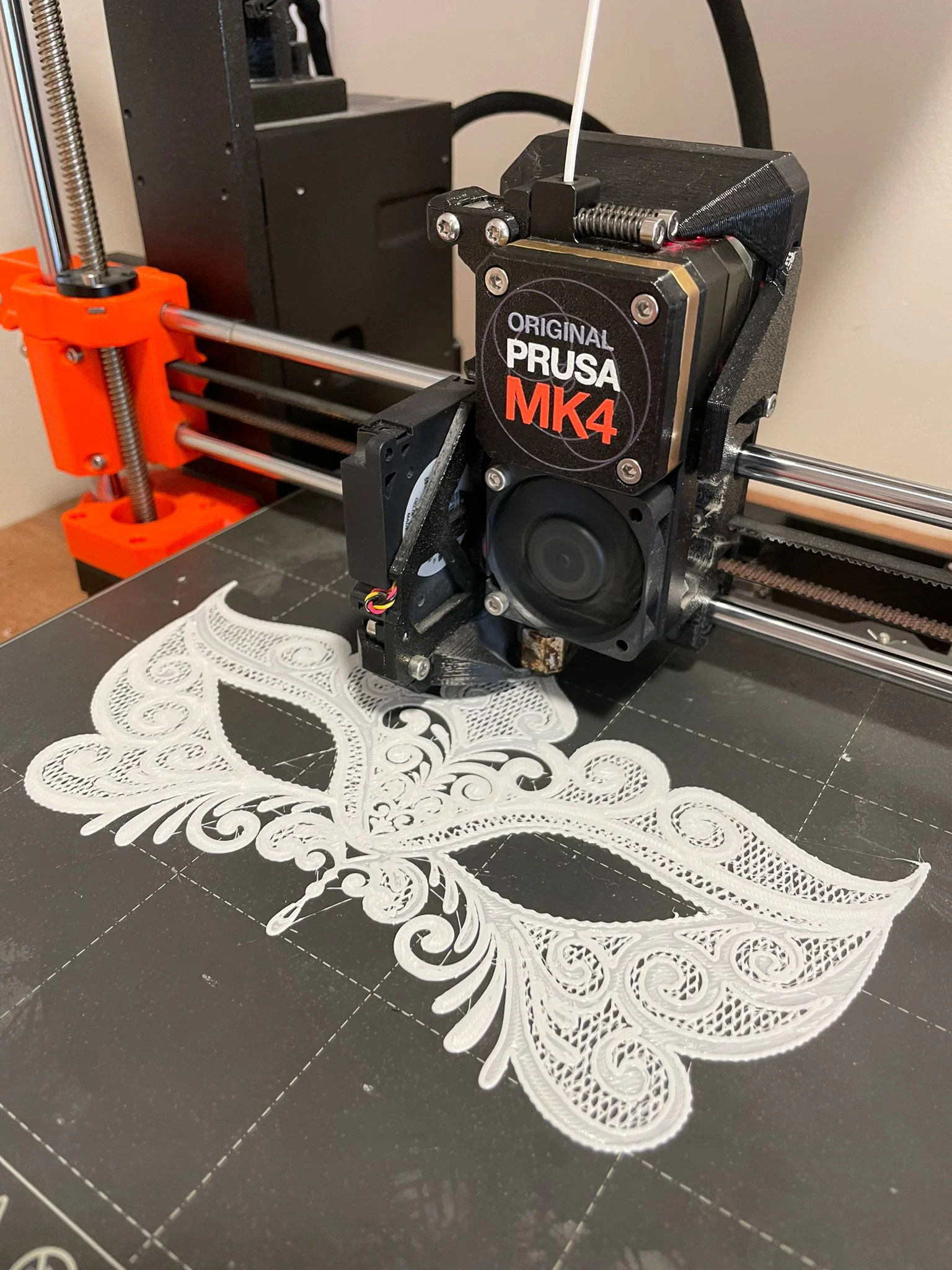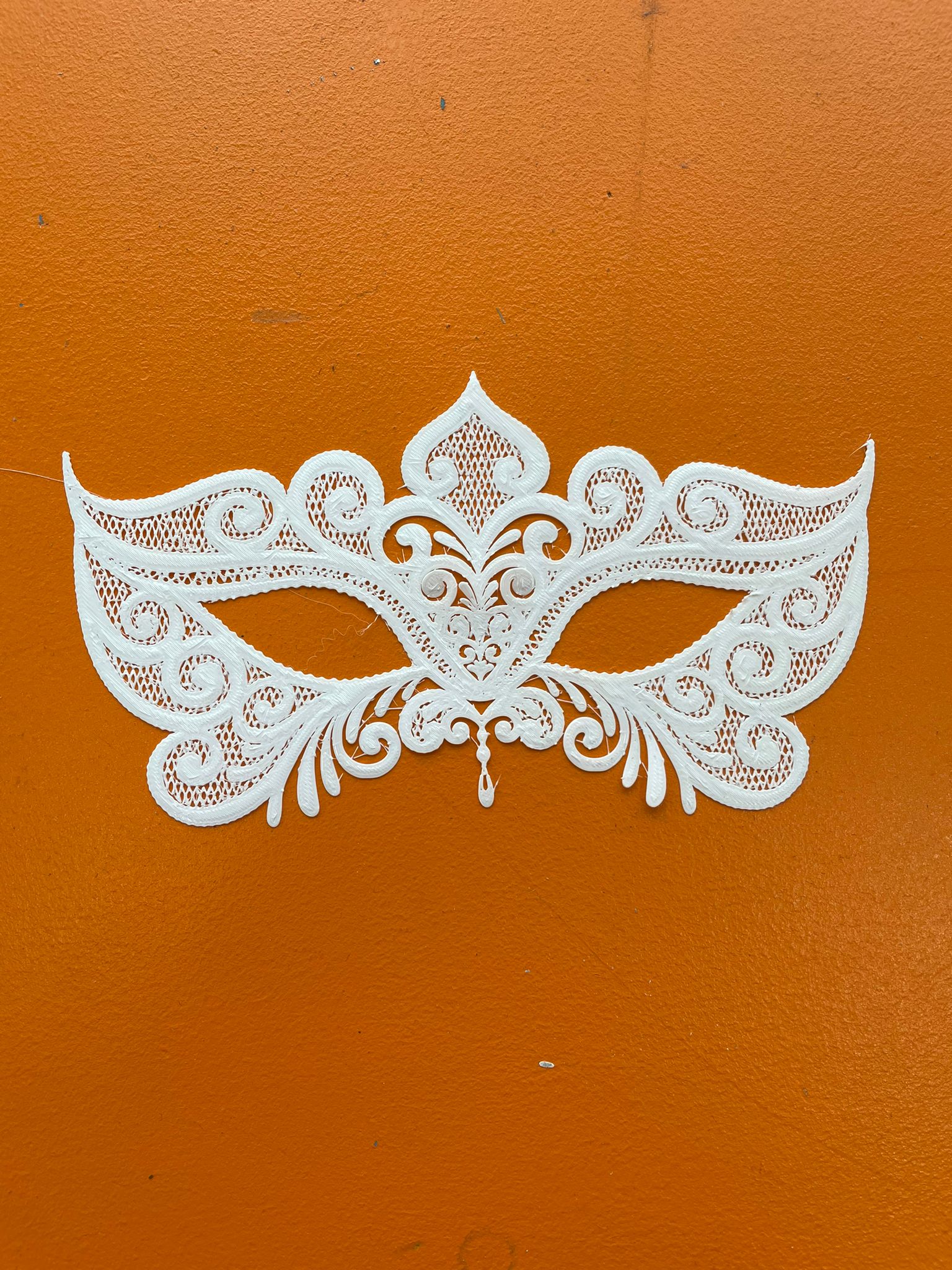 Thiết kế Face Mask Lace Carnival lấy cảm hứng từ mặt nạ lễ hội với họa tiết ren. Khuyến nghị in bằng flexible filament để đeo dễ chịu; có thể thử PLA in 1–2 layer. Có kèm STL và SVG, gợi ý import SVG vào PrusaSlicer để chỉnh độ dày.