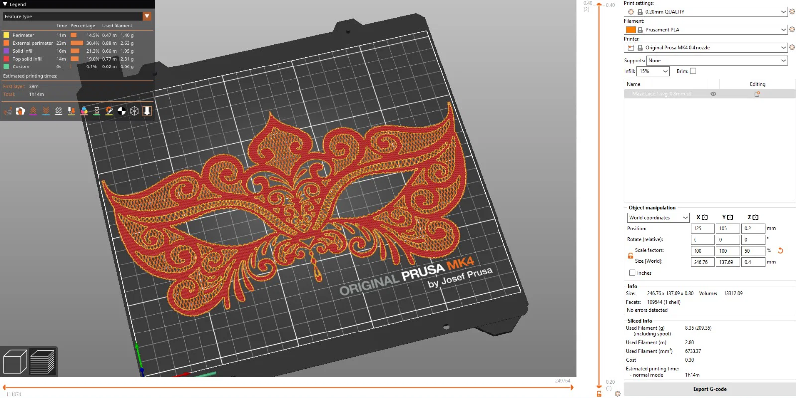 Layer Thickness: 0.4mm (nếu làm dày hơn thì mặt nạ sẽ cứng hơn)