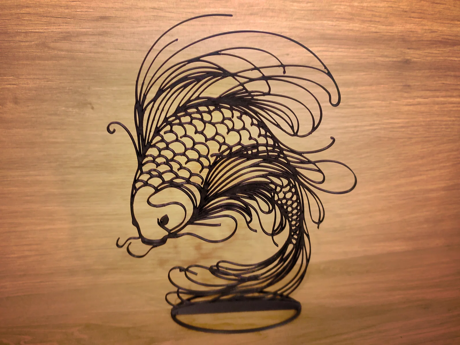 Mẫu cá koi 3D phong cách tối giản với đường nét thanh lịch, dạng phẳng (flat) hợp decor không gian hiện đại. Model rất mỏng, in PLA không cần supports; nếu scale, chỉ scale XY và giữ Z 100%.