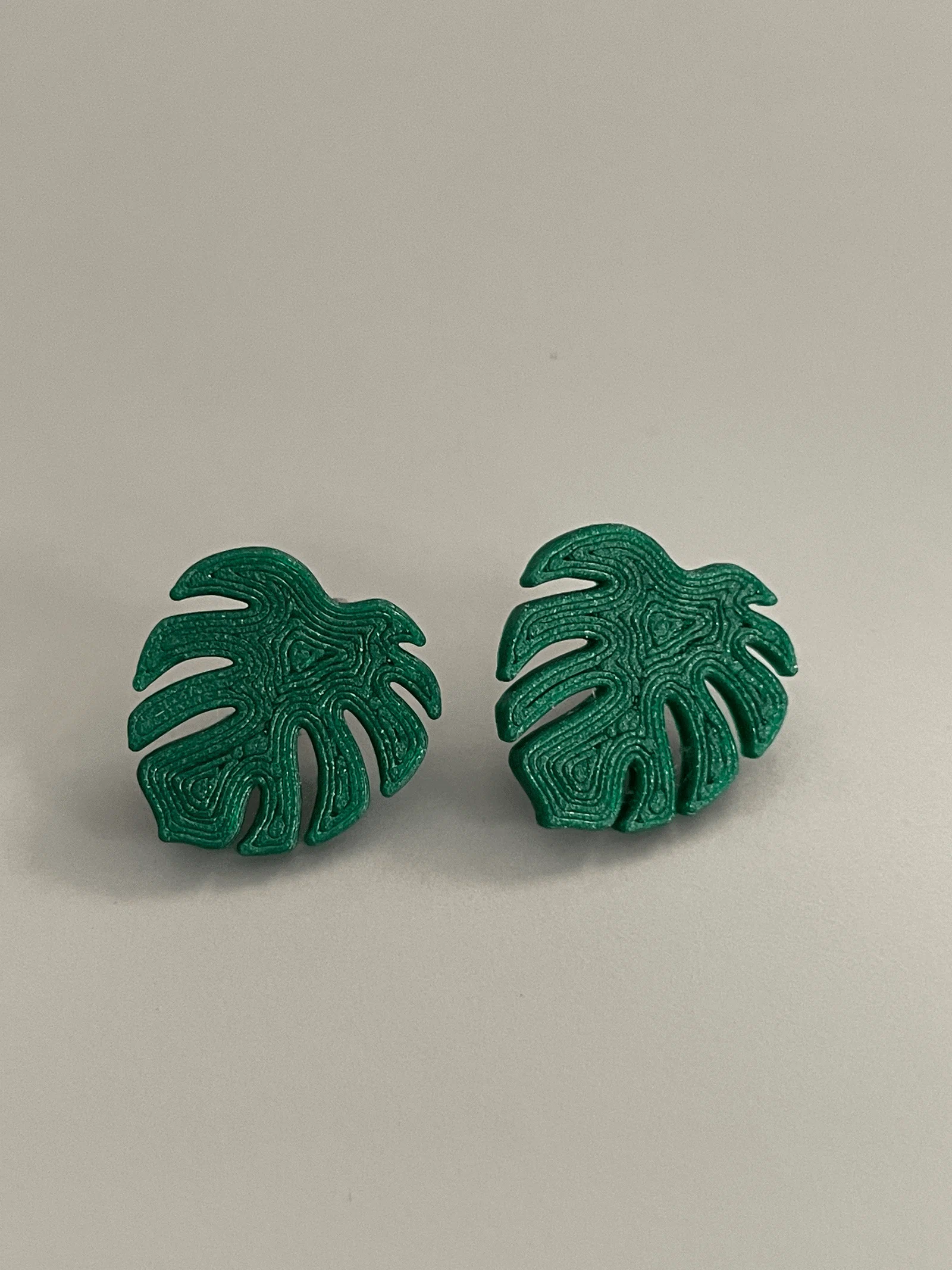 Mẫu bông tai stud hình lá Monstera, chuẩn kích thước cho stud backing 0.25in (6.1mm). Kích thước 16.5 x 17.75 x 2mm. Khuyến nghị in top & bottom concentric và tăng nhẹ z để lộ vân đẹp.