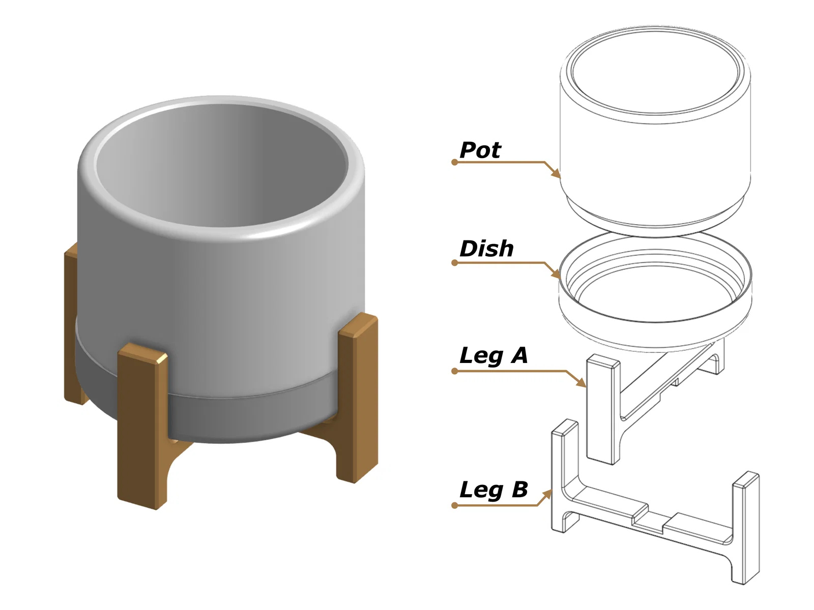 Thiết kế của chậu được làm theo kiểu giống các chậu mid century, với phần chậu màu trắng và chân nhìn như gỗ. Dĩ nhiên, thiết kế cũng có lỗ thoát nước và một cái đĩa rời để hứng phần nước dư.