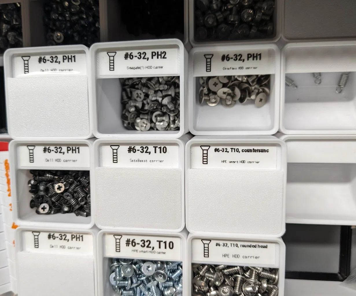 * Thiết kế riêng cho kích thước nhãn mặc định của Fusion 360 Gridfinity generator. Hiện tại chưa đảm bảo sẽ vừa với các model hoặc generator khác. Có kèm một số khay 1x1 tương thích.