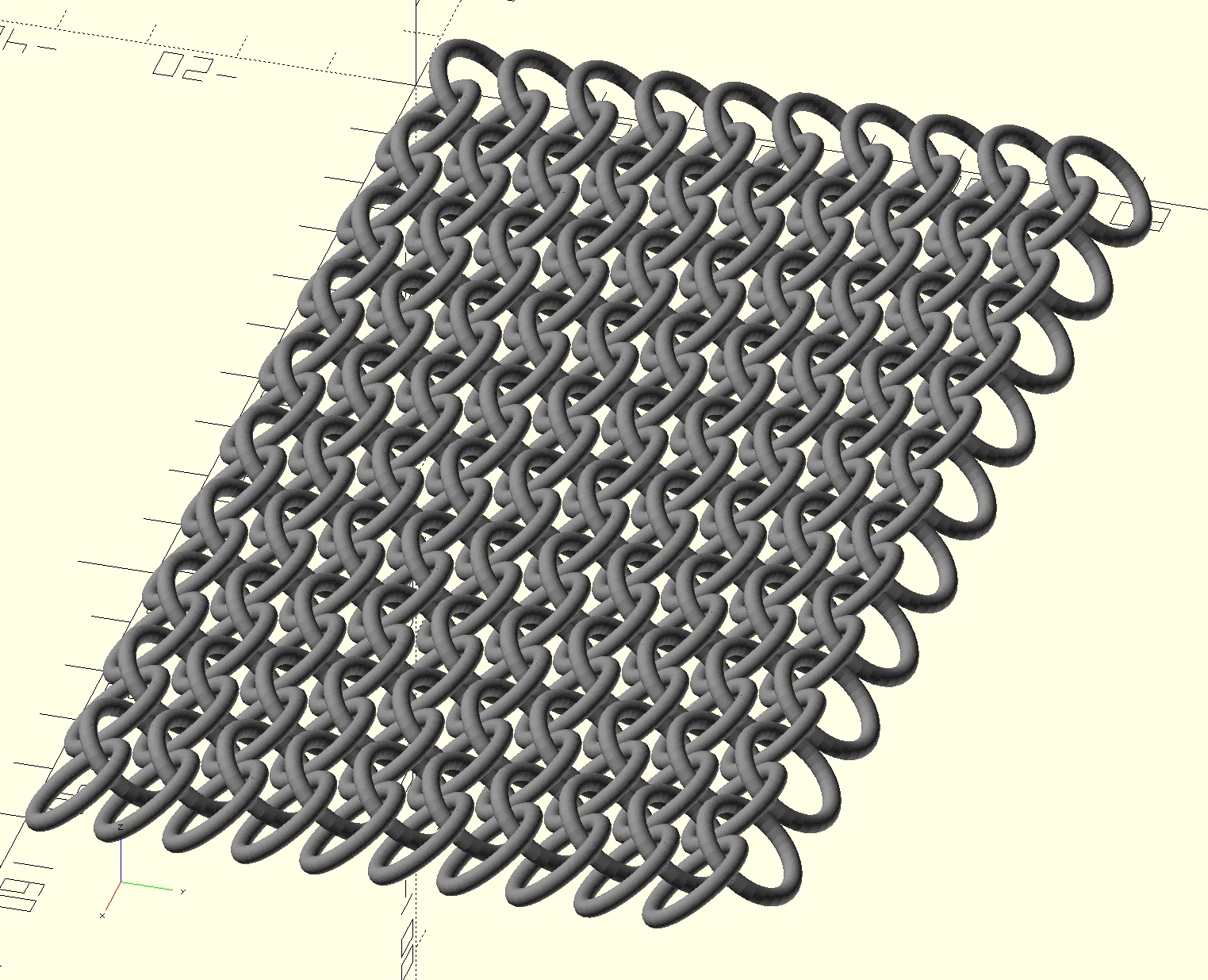 Parametric Chain Mail V2 là mẫu chainmail dạng tham số: ring size scale nhanh, chỉnh số vòng theo X/Y để tạo tấm chainmail mọi kích thước. Bản V2 có đáy vòng phẳng giúp in 3D dễ hơn, kèm source OpenSCAD.