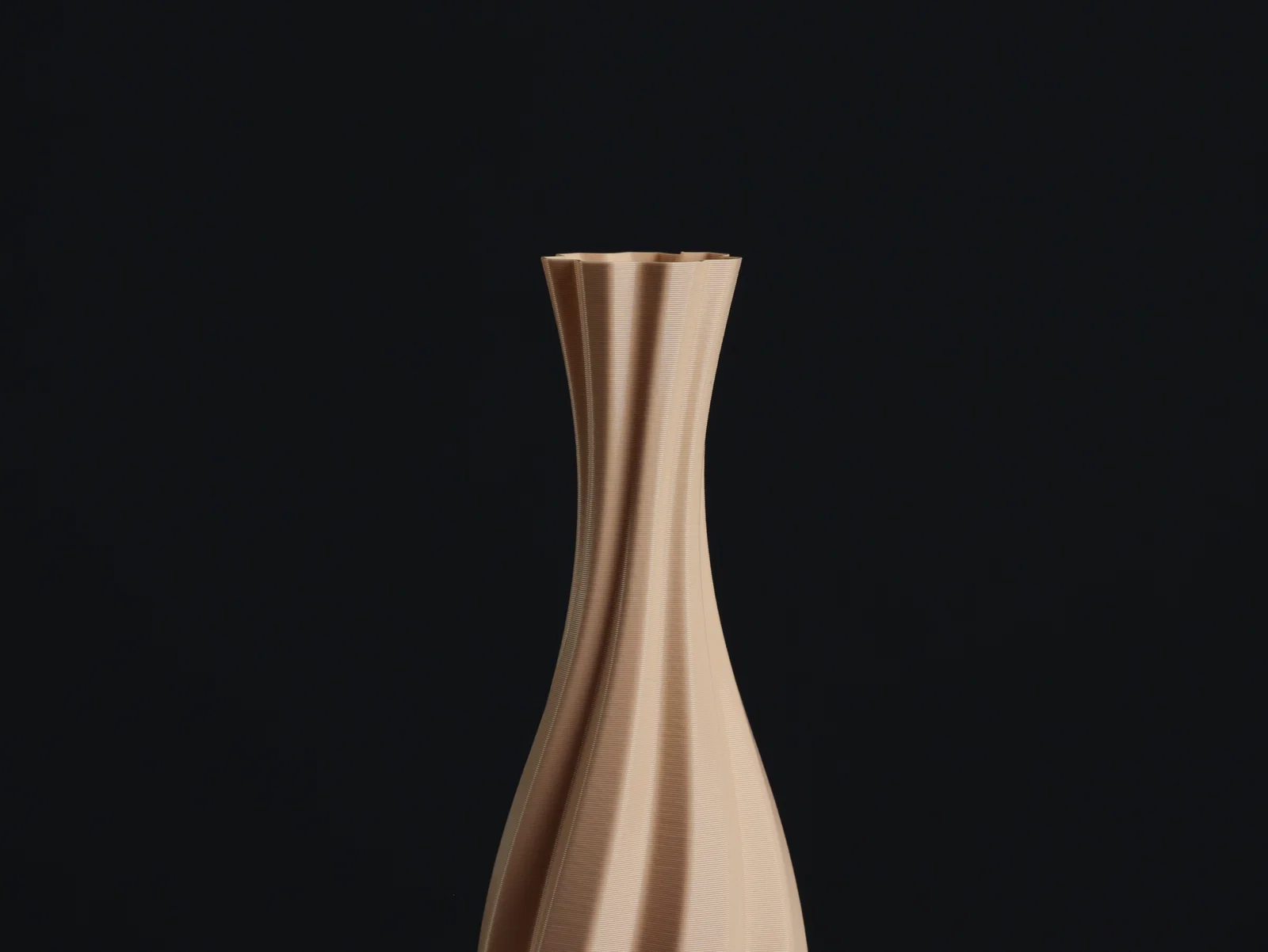 Bình hoa xoắn cao in ở vase mode, hợp để trưng hoa khô hoặc để decor. Dễ in với ‘spiral vase’ (PrusaSlicer) hay ‘spiralize outer contours’ (Cura). Khuyến nghị extrusion width ≥ 0.6 mm cho chắc.