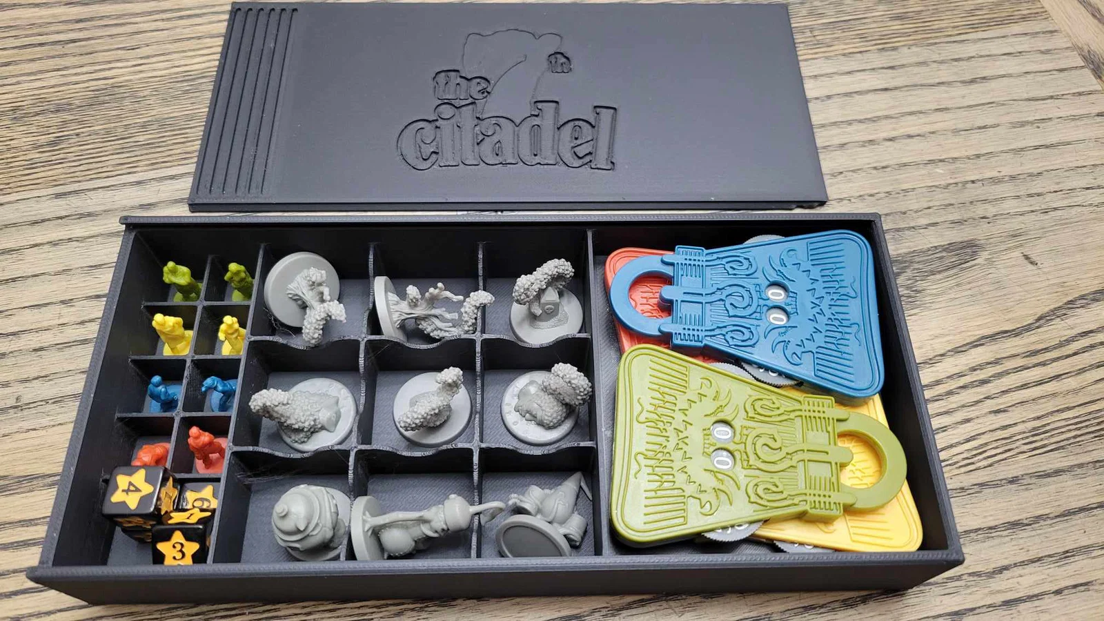 Insert dạng hộp đơn giản để sắp xếp toàn bộ miniatures và phụ kiện của The 7th Citadel (kèm các expansion) gọn trong hộp chính. Có bản cover không chữ để dễ in, lưu ý chỉ dùng phi thương mại.