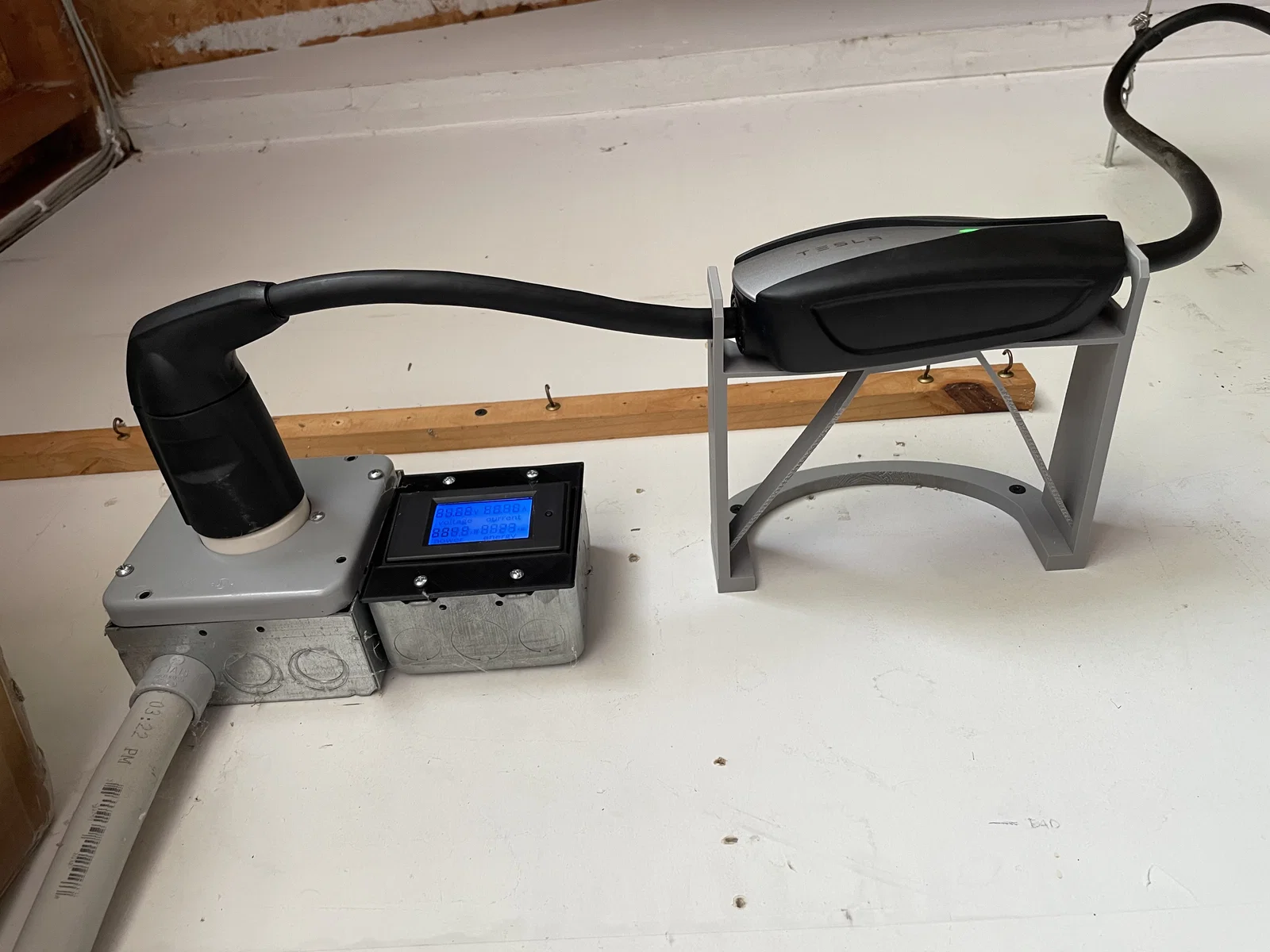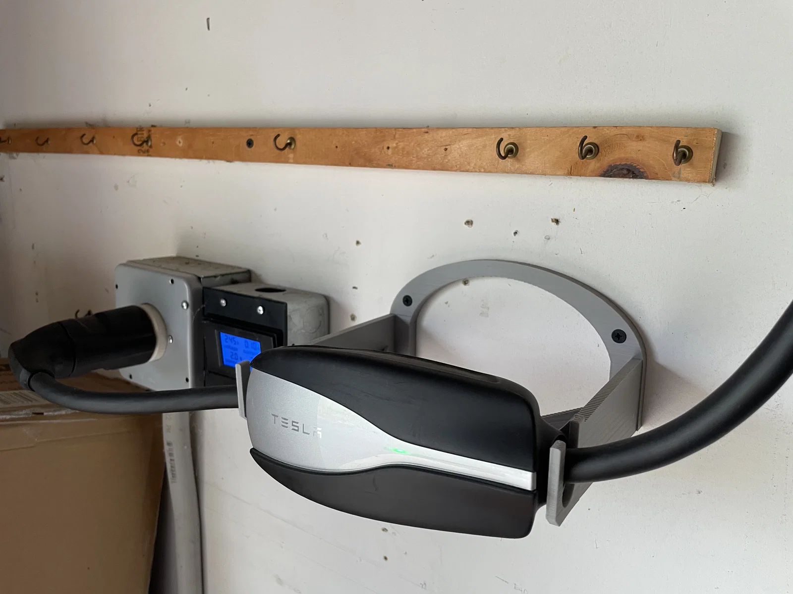Tesla UMC đời đầu của mình có cái phích cắm rất to, cắm vào ổ điện gắn nổi trên tường, nên UMC phải được treo cách tường vài inch để giảm việc dây bị bẻ cong. Mẫu mình thiết kế sẽ giữ UMC theo phương ngang ở đúng khoảng cách so với tường, để đoạn pigtail gần như thẳng. Thiết kế ngàm treo cũng cho luồng gió lưu thông rất tốt và cực kỳ chắc chắn, dù khá mỏng và dùng ít filament.