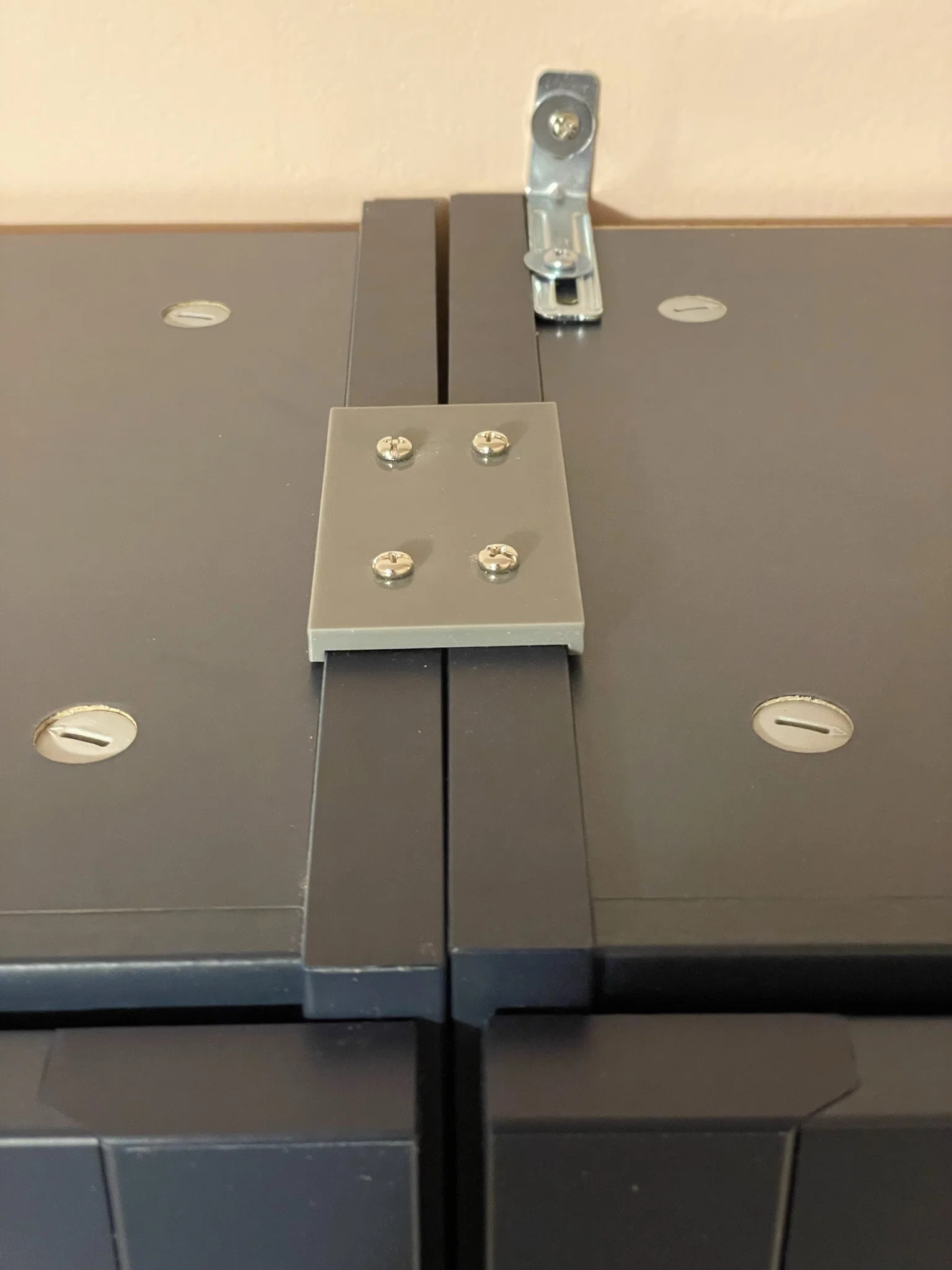 Pát/Ngàm in 3D để nối 2 kệ IKEA Billy đặt sát nhau ở phần trên, khuất tầm nhìn. Dùng 4 vít nhỏ, khuyên in 100% infill (10% vẫn khá chắc). Có thể ghép 2 mẫu trong slicer để tăng chiều dài.