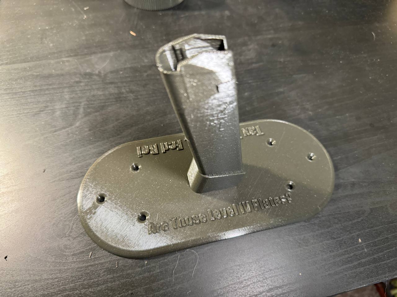 Stand này cho mình trưng khẩu (airsoft) trên bàn hoặc kệ. Mình cũng thêm sẵn lỗ bắt vít, và hiện tại mình in vài cái để treo mấy khẩu (airsoft) lên tường cho dễ lấy, dễ dùng.