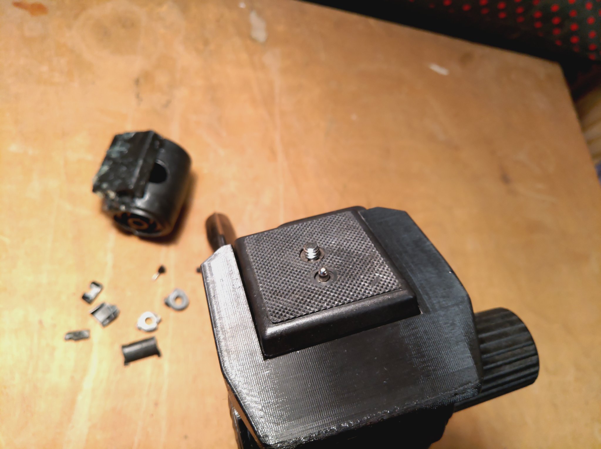 Đây là chân máy 1 trong 2, tôi đã phải xây dựng lại gần như toàn bộ đầu từ đầu, không còn nhiều thứ để lưu lại hoặc đo lường, như đã thấy trong ảnh. Nó có thể nghiêng, quay và nghiêng như bản gốc. In bằng PETG 0.1mm.