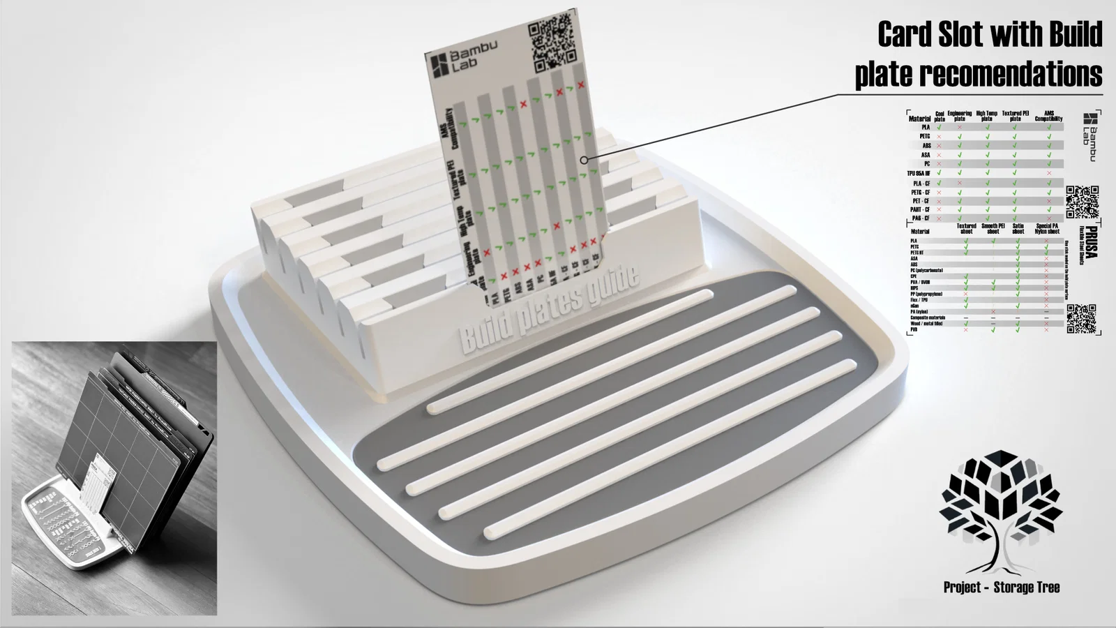 Thiết kế này đi theo ý tưởng tổng thể của dự án “Storage Tree”, đảm bảo tính đồng bộ về mặt thẩm mỹ và khả năng tương thích giữa các module, dù bạn dùng chung như một hệ hay dùng riêng lẻ. Ở đây, mình đưa ra một giải pháp để lưu trữ build plate cho máy in của bạn: Bambu Lab, Prusa, và nhiều hãng khác nữa…