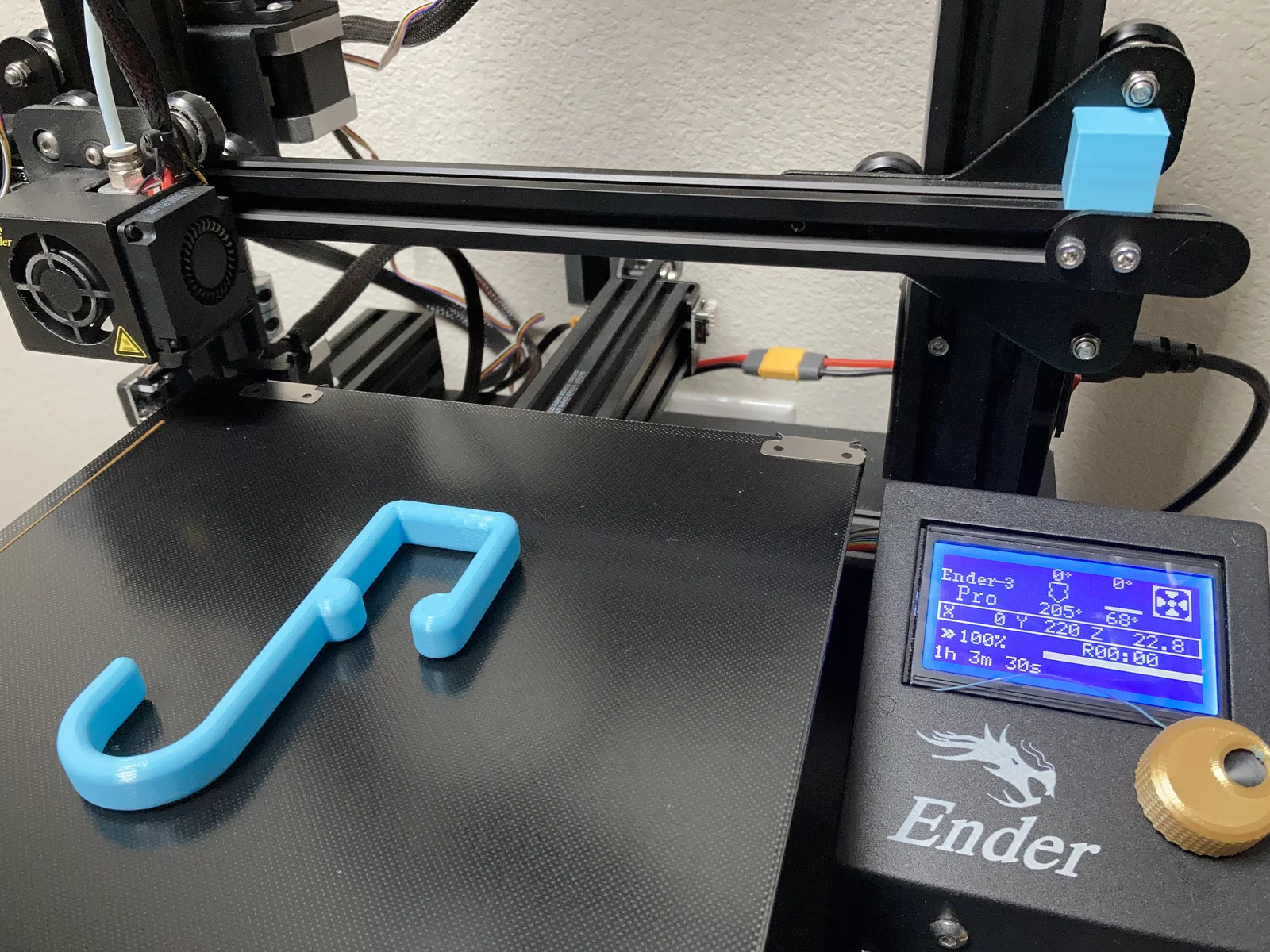 Thiết kế bằng Fusion 360. Mình in trên Ender 3 Pro với filament Inland Turquoise 1.75mm. Mình slice trong Cura với 5% gyroid infill, nhiệt nozzle 230°C và nhiệt bed kính 70°C.