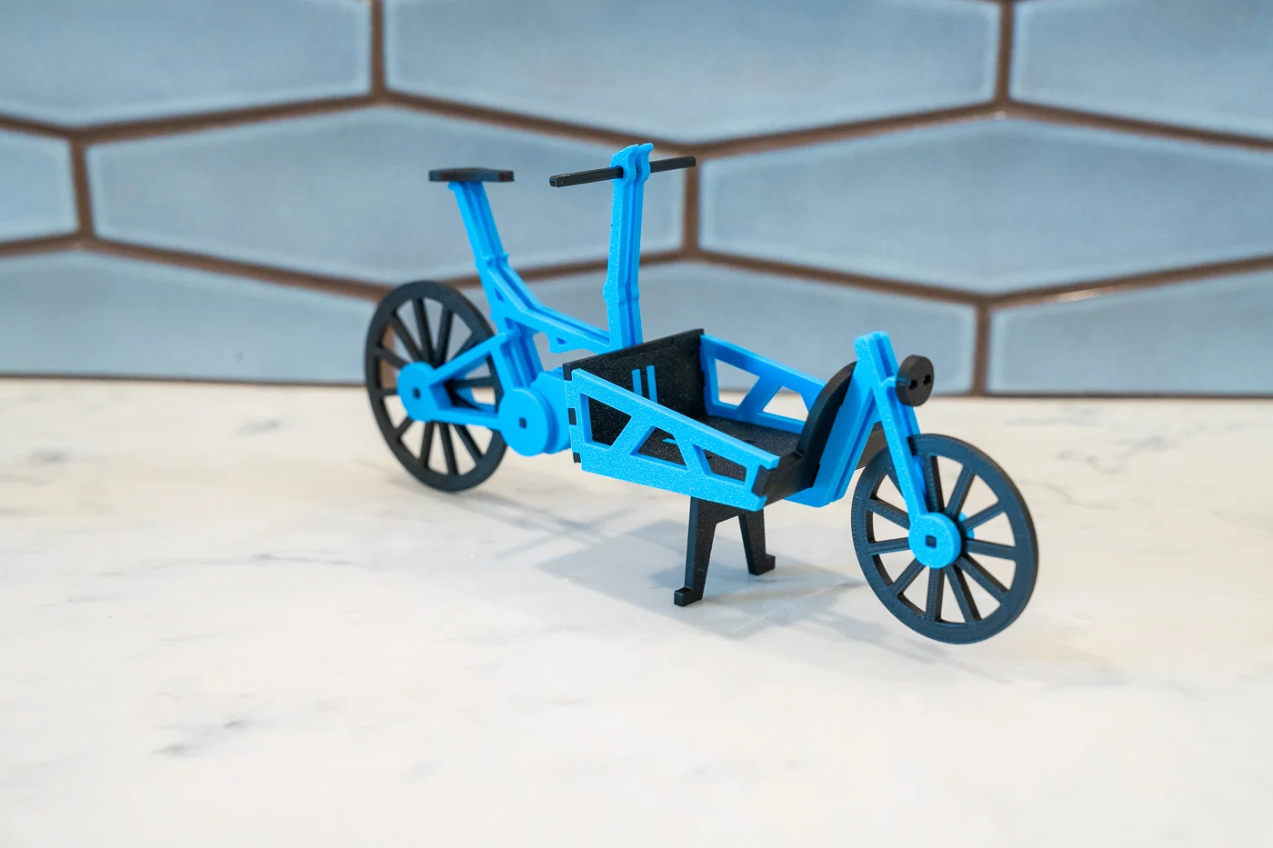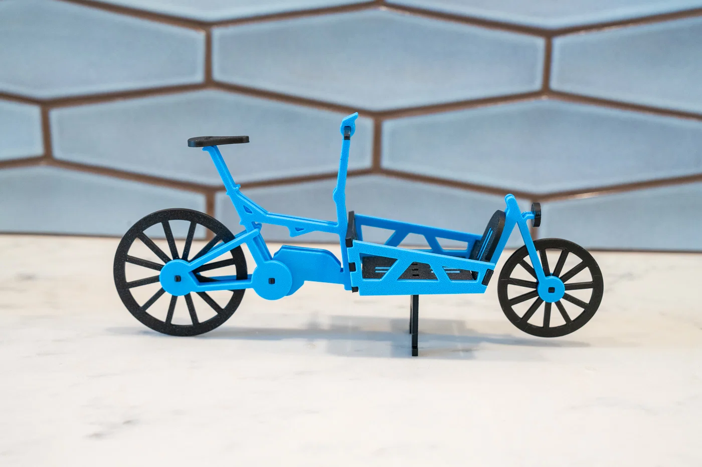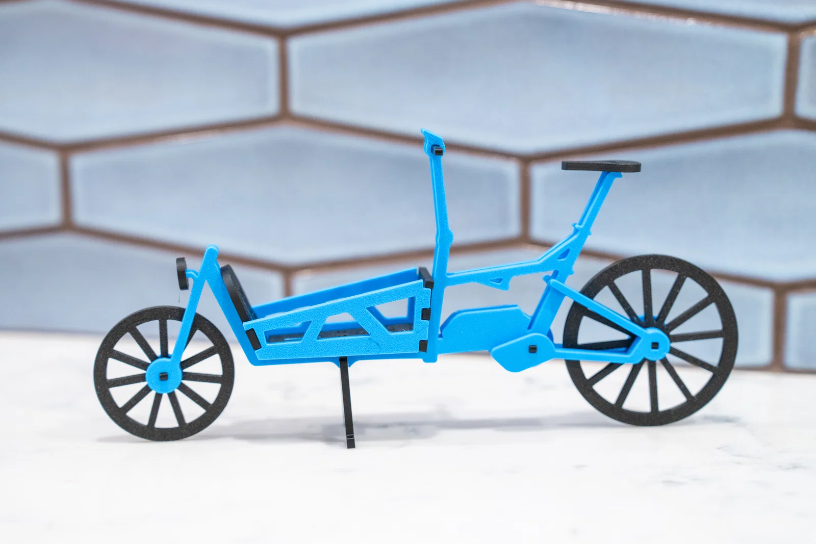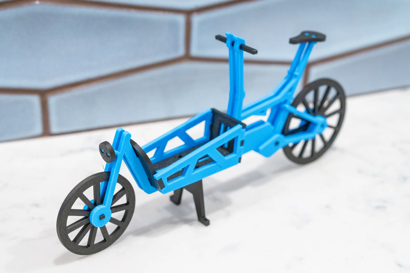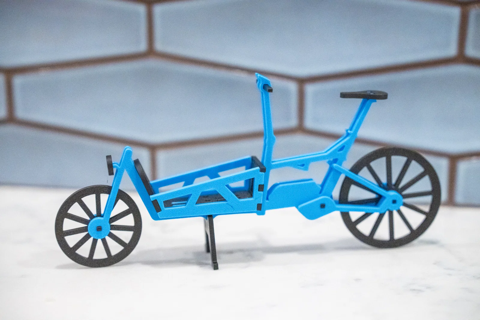 Dựa theo xe đạp chở hàng Riese & Müller Load 60. Có chống đứng (kickstand) và lắp ráp các chi tiết lại với nhau không cần keo.