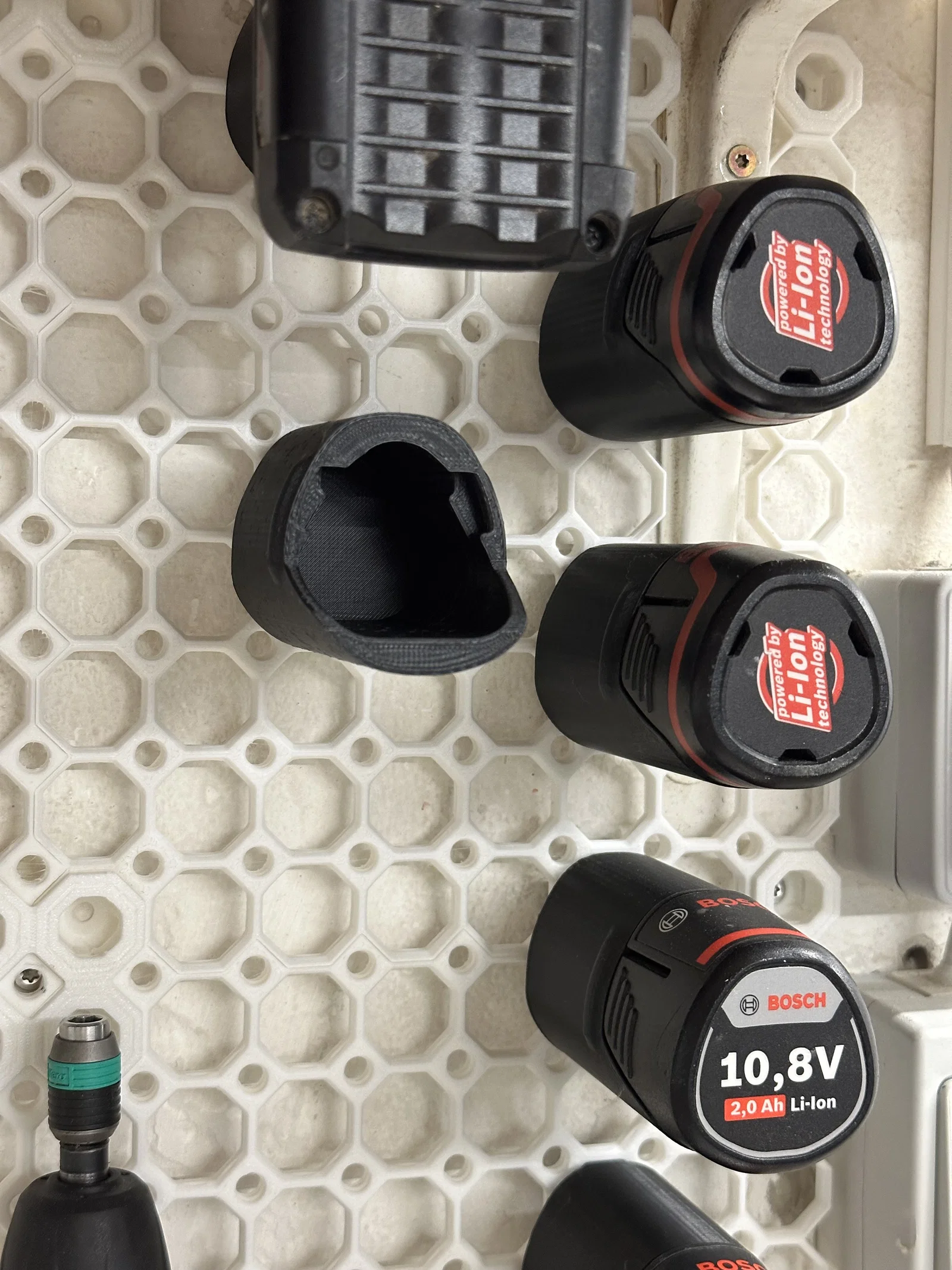 Ngàm giữ pin Bosch Professional 12V dành cho Multiboard. Có 2 phiên bản: một bản in không cần support, bản còn lại ngắn hơn nhưng cần support. Dùng 1 weight-bearing directional snap và 1 snap normal, nên lắp theo góc nghiêng.