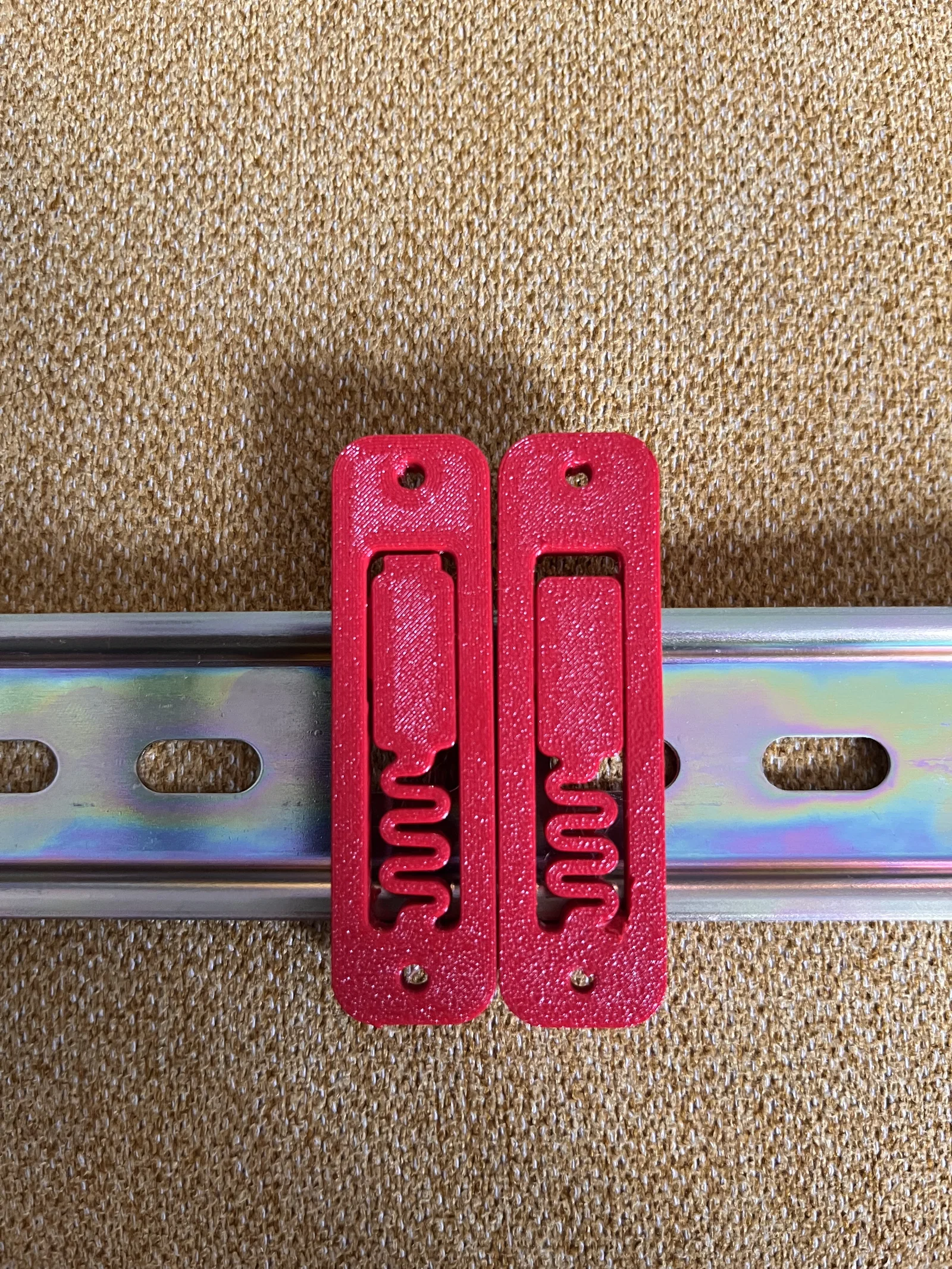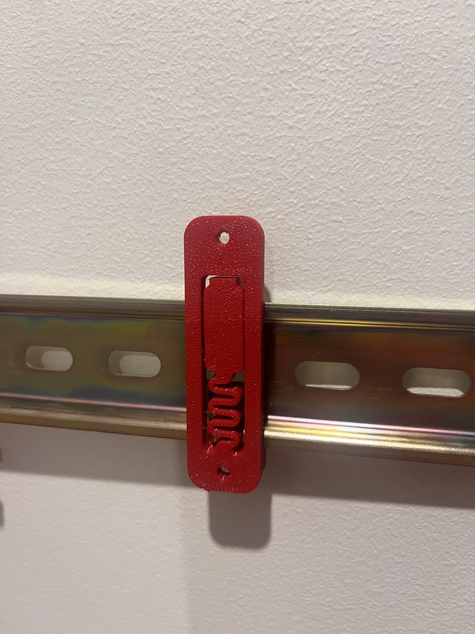 Mẫu adapter DIN rail dùng lò xo đơn cho nguồn Meanwell RS-25-5, được tăng độ bền ở phần ngàm. In thử bằng PETG layer 0.2 mm, infill 50%, không cần support; nhớ kiểm tra lò xo trượt tự do trước khi lắp.