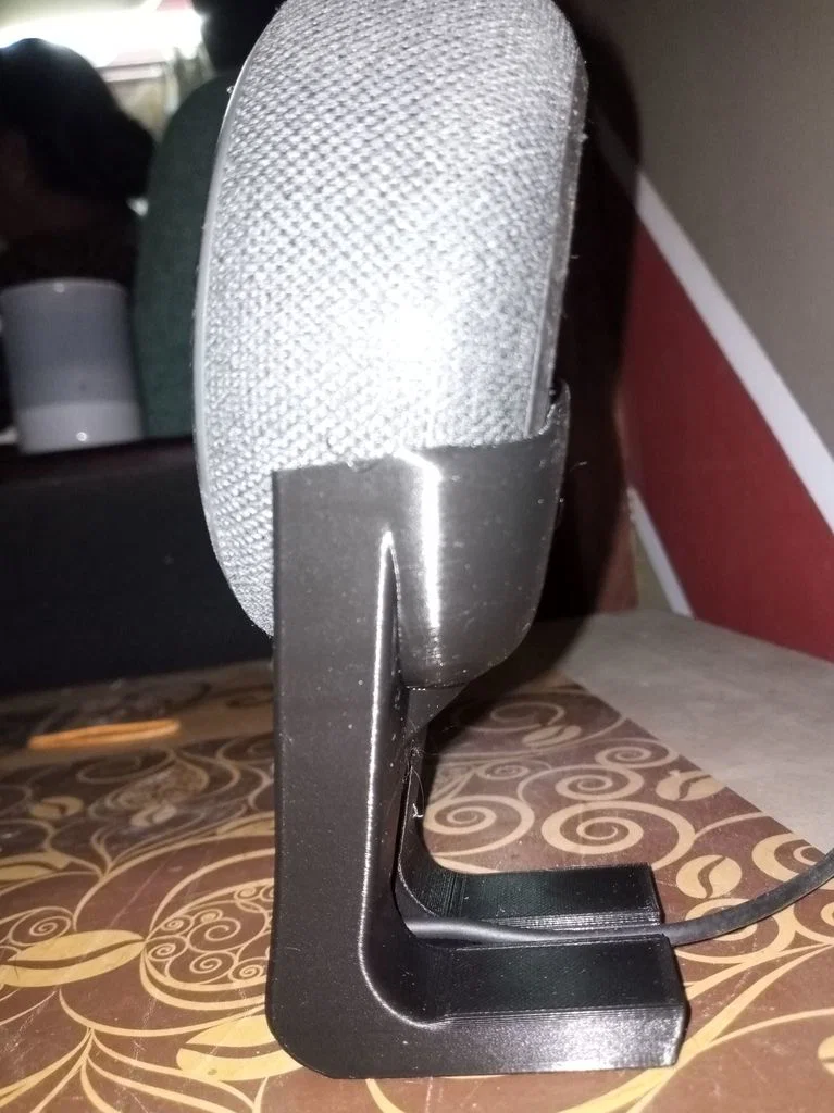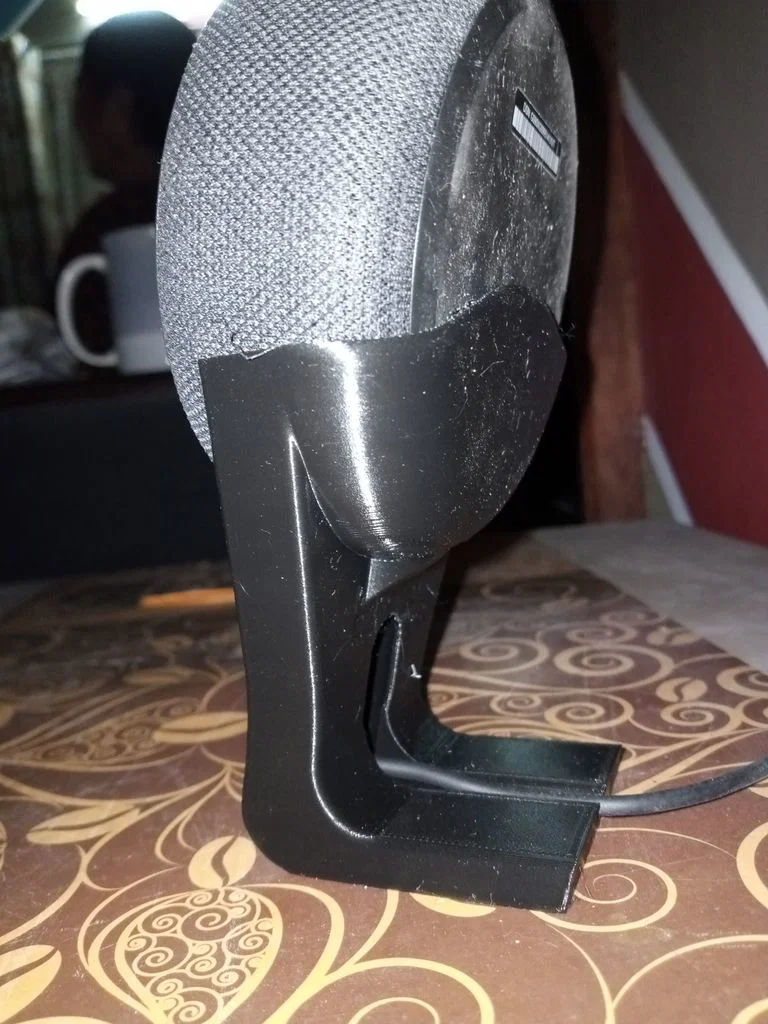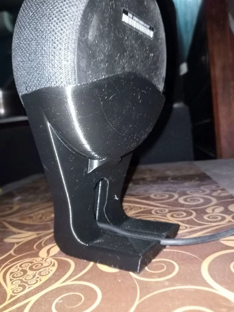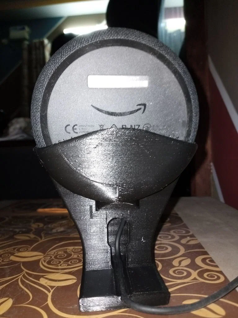Mẫu kệ đỡ Alexa được thêm một gờ đỡ nhỏ phía sau giúp in mà không cần supports. Chỉ việc đặt đứng thẳng rồi in. Mặt sau có vài lỗi nhỏ do làm gấp nhưng gần như không nhìn thấy.