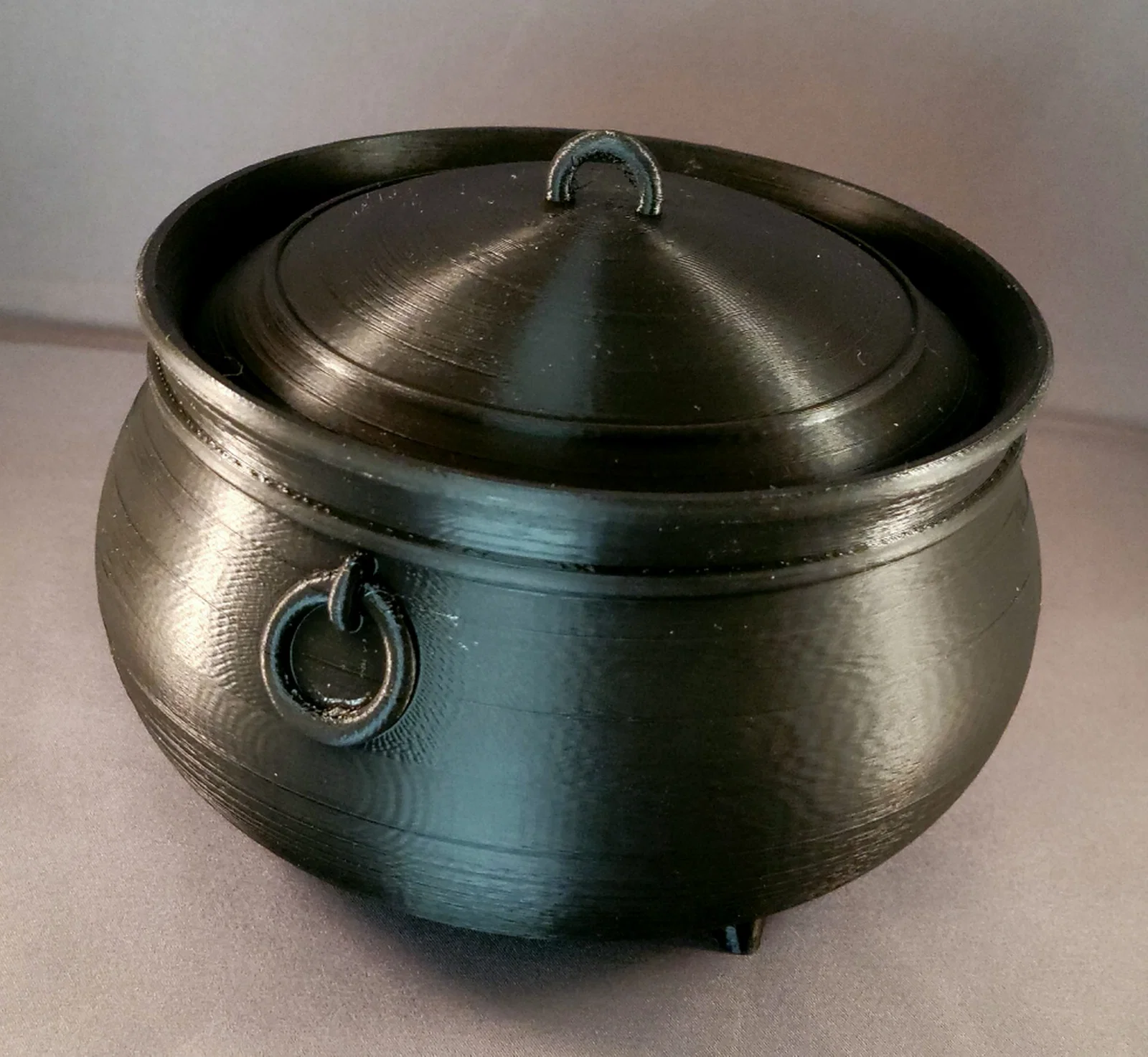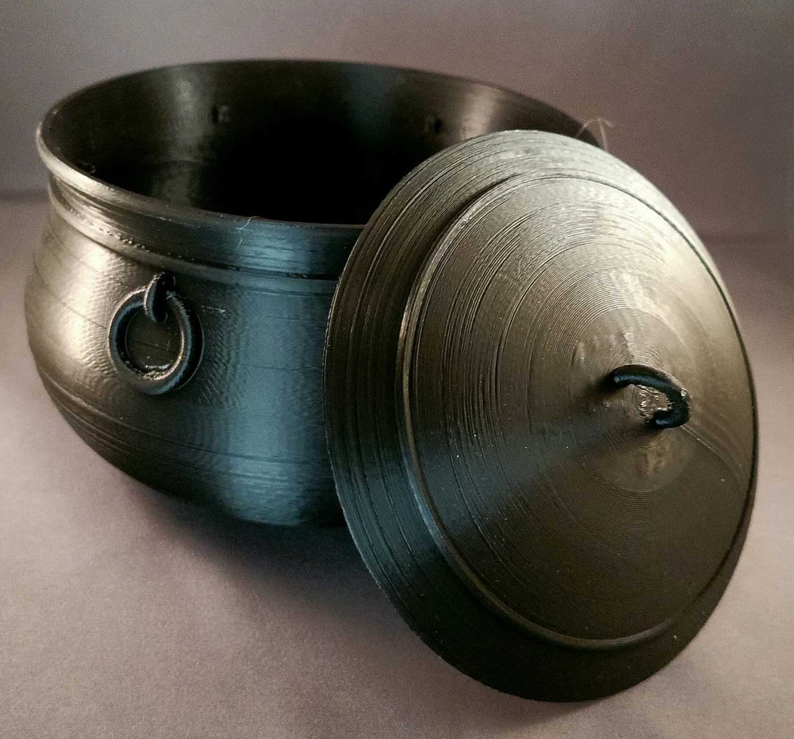 Cái vạc trong hình được in bằng AnkerMake M5, dùng AnkerMake PLA+ màu đen, xanh “AnkerMake”, đỏ, vàng, cam và PLA màu tím của Flashforge.