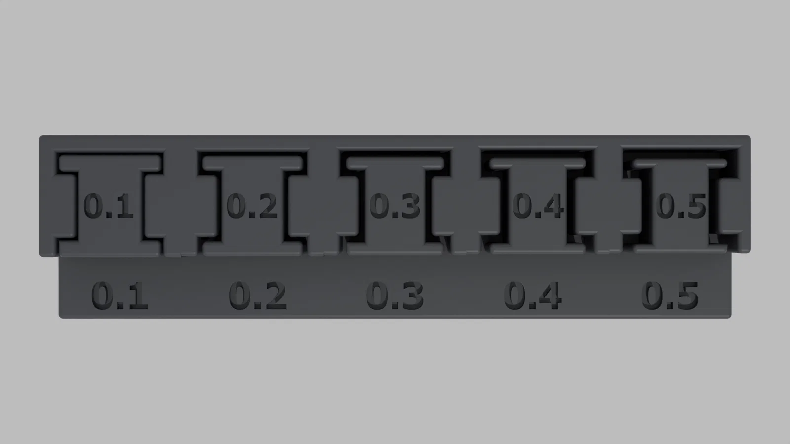 Mẫu XY Size Compensation Test giúp xác định mức bù “XY expansion” khi in FDM làm chi tiết bị lớn hơn ở X/Y. Gồm 5 khe với offset 0.1–0.5 mm để chọn giá trị phù hợp và áp dụng cho các mẫu in sau.