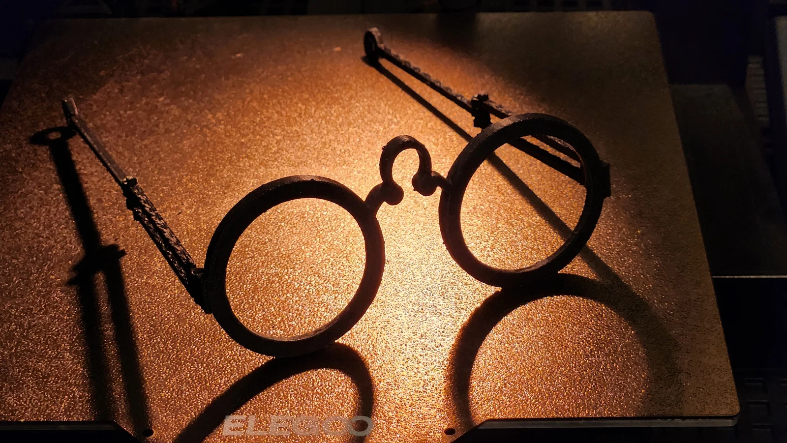 Mình thiết kế cái kính này trên Tinkercad, dùng một mẫu bản lề có sẵn để gọng có thể bấm khớp lại với nhau và có chút độ đàn hồi. Tuy nhiên mình in ra cho kết quả hơi hên xui do máy in gặp vấn đề.