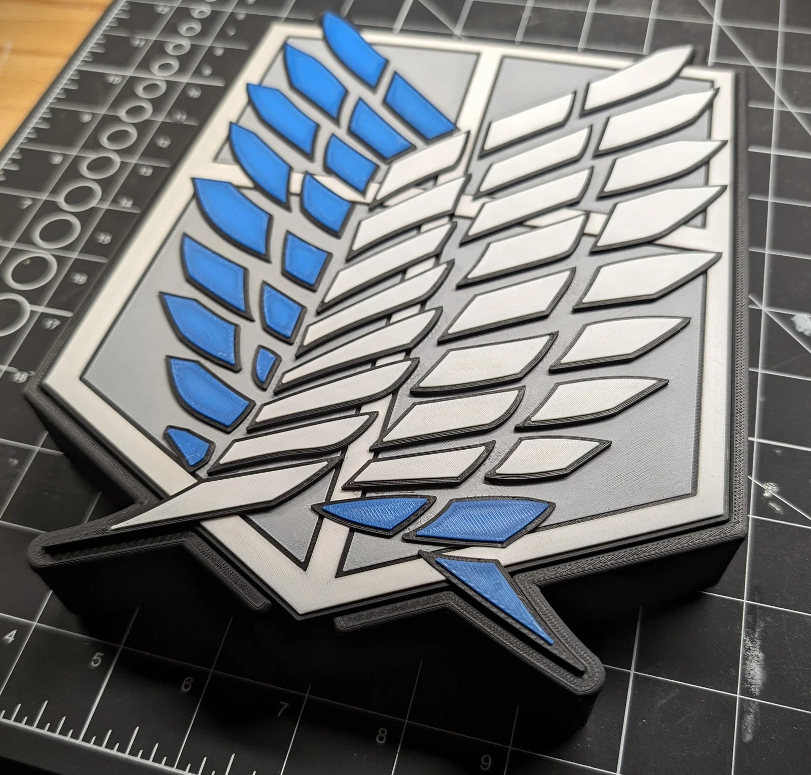 Mình đã dựng (model) huy hiệu Scout Regiment trong Attack on Titan cho một dự án, và thấy nó hợp làm hộp đựng xúc xắc (dice box) ghê, nên mình làm luôn đây.