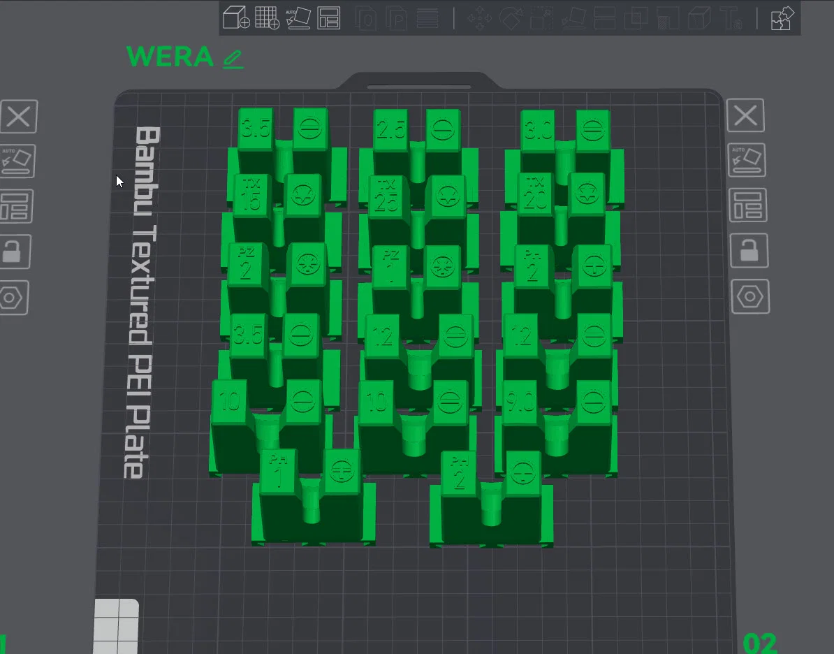 Bản REMIX ngàm gắn tua vít Wera Kraftform MultiConnect cho Multiboard. Có hướng dẫn in label 2 màu (pause ở layer 240 để đổi filament) và thông số in tham khảo cho Bambu Lab P1P với PLA.