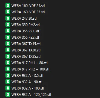 Mình có thêm danh sách bản Remix hiện tại (trong hình). Hiện giờ mình không có thêm tua vít Wera nào nữa nên mình chỉ remix những cái có trong danh sách.