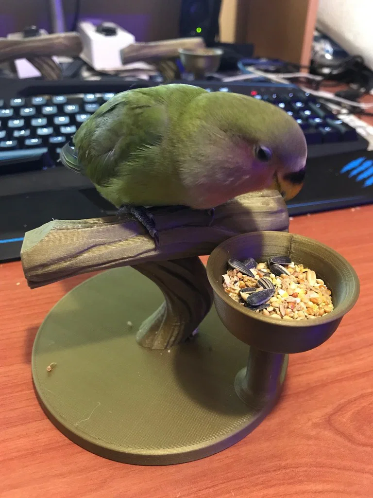 Mẫu giá đậu cho lovebird/parrot có thêm khay thức ăn để chim có thể nhâm nhi khi bạn ngồi trước PC thiết kế và in 3D. Lấy cảm hứng từ stand của Etta trên thingiverse và chỉnh sửa (mod) theo nhu cầu.
