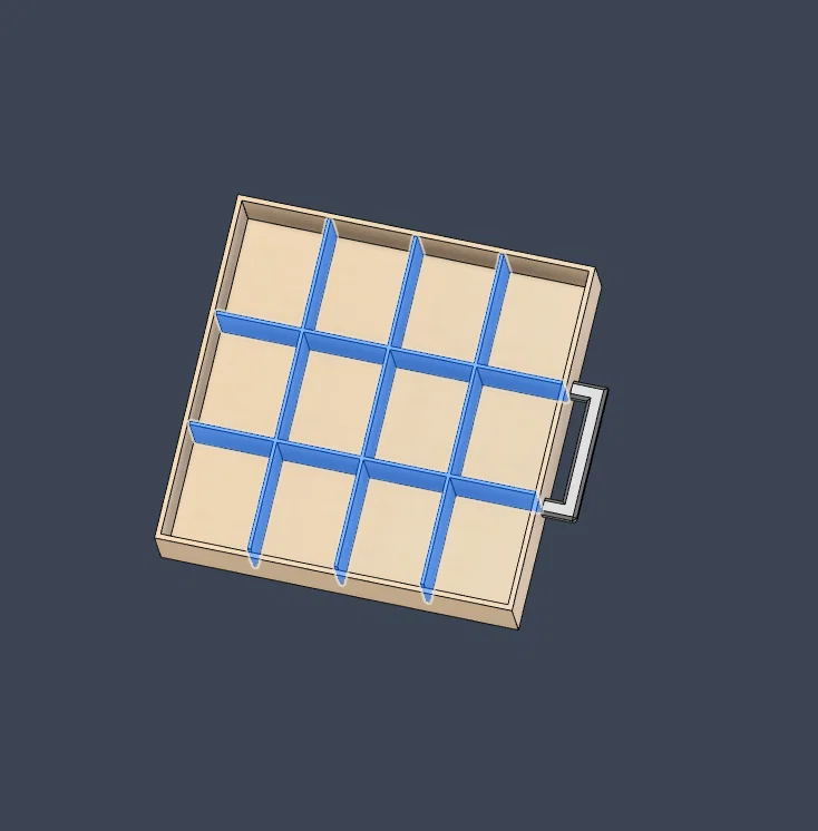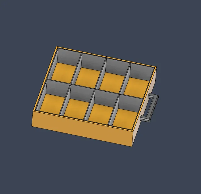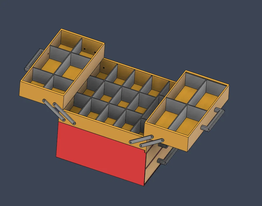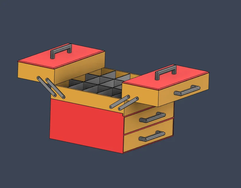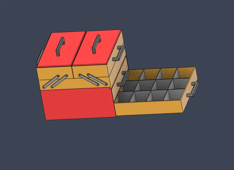 Khay phân loại kích thước lớn có nhiều ngăn kéo, tiện để cất phụ kiện may vá hoặc các món đồ nhỏ khác. Có nhiều tùy chọn khay chia (grid) cho ngăn trên và ngăn dưới, lắp ráp bằng ốc M3.