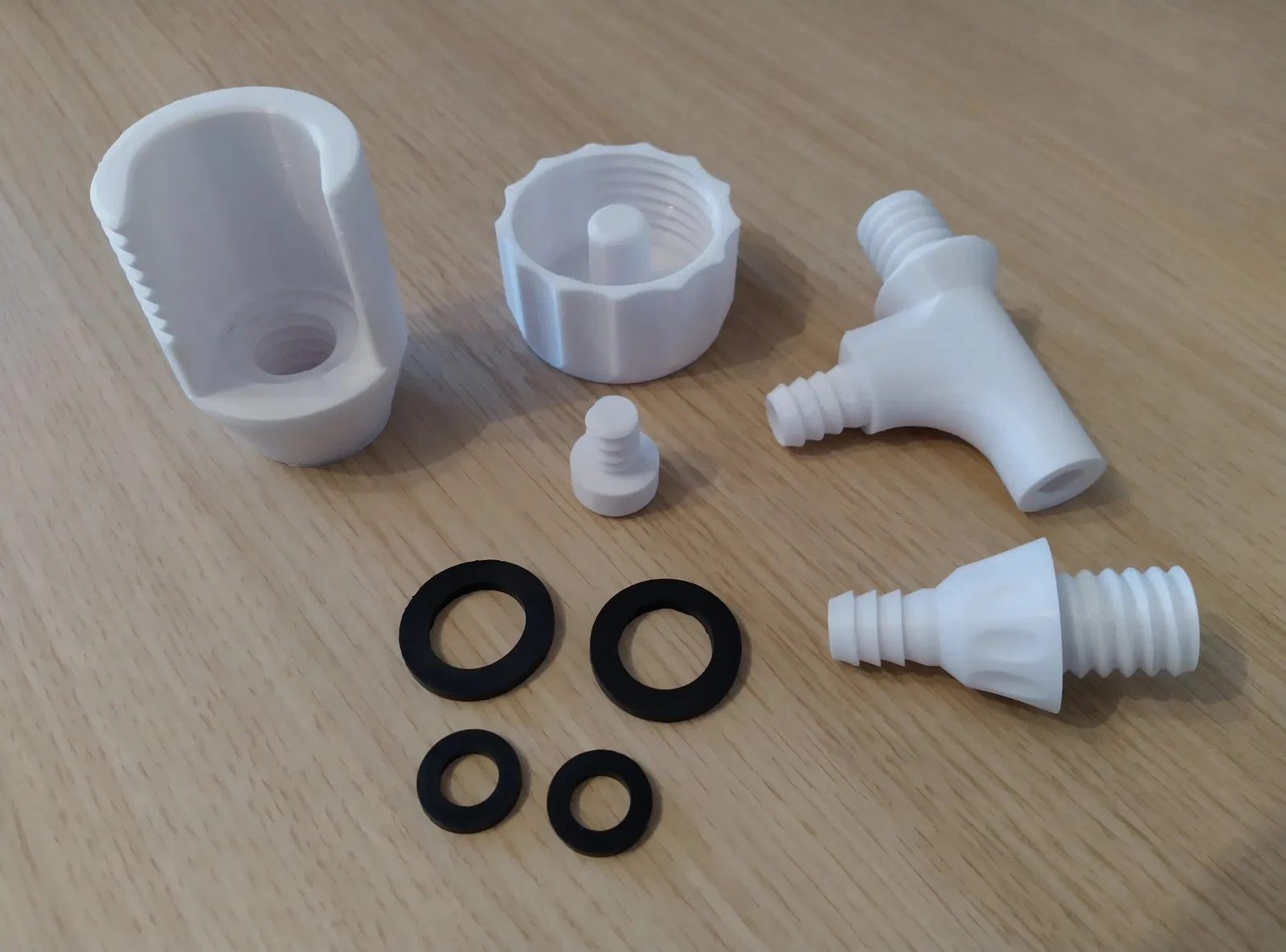 - 2x vòng đệm 19x2,4mm (đường kính trong 11mm) hoặc bất kỳ vật liệu niêm phong tương tự nào. (xem hình ảnh về các vòng đệm tôi đã sử dụng). In tất cả các bộ phận với chiều cao lớp 1.6mm và 200°/60° PLA. Hầu hết chúng không cần hỗ trợ. (xem hình ảnh slicer cho hỗ trợ và hướng in) Lưu ý rằng những thành phần này không hoàn toàn chống thấm nước, điều này không quan trọng vì nó được sử dụng trên bồn rửa nước. Các bước thực hiện cho việc thay nước: 1. kết nối bộ chuyển đổi với vòi nước 2. đảm bảo rằng đầu ra được đóng bằng "suction_adapter_plug" 3. mở vòi nước cho đến khi ống vào bể cá được lấp đầy hoàn toàn bằng nước 4. đóng vòi nước và tháo "suction_adapter_plug" - nếu mực nước trong bể cá của bạn cao hơn bộ chuyển đổi, nước sẽ bắt đầu chảy ra khỏi bể cá 5. dừng việc nước chảy ra khỏi bể cá, vặn lại "suction_adapter_plug" và mở vòi nước. Thật không may, tôi không thể đảm bảo rằng bộ chuyển đổi này sẽ phù hợp với vòi nước của bạn - vui lòng kiểm tra kích thước chính xác của vòi nước trước khi in. (do đó xem hình ảnh cho kích thước vòi nước cần thiết)