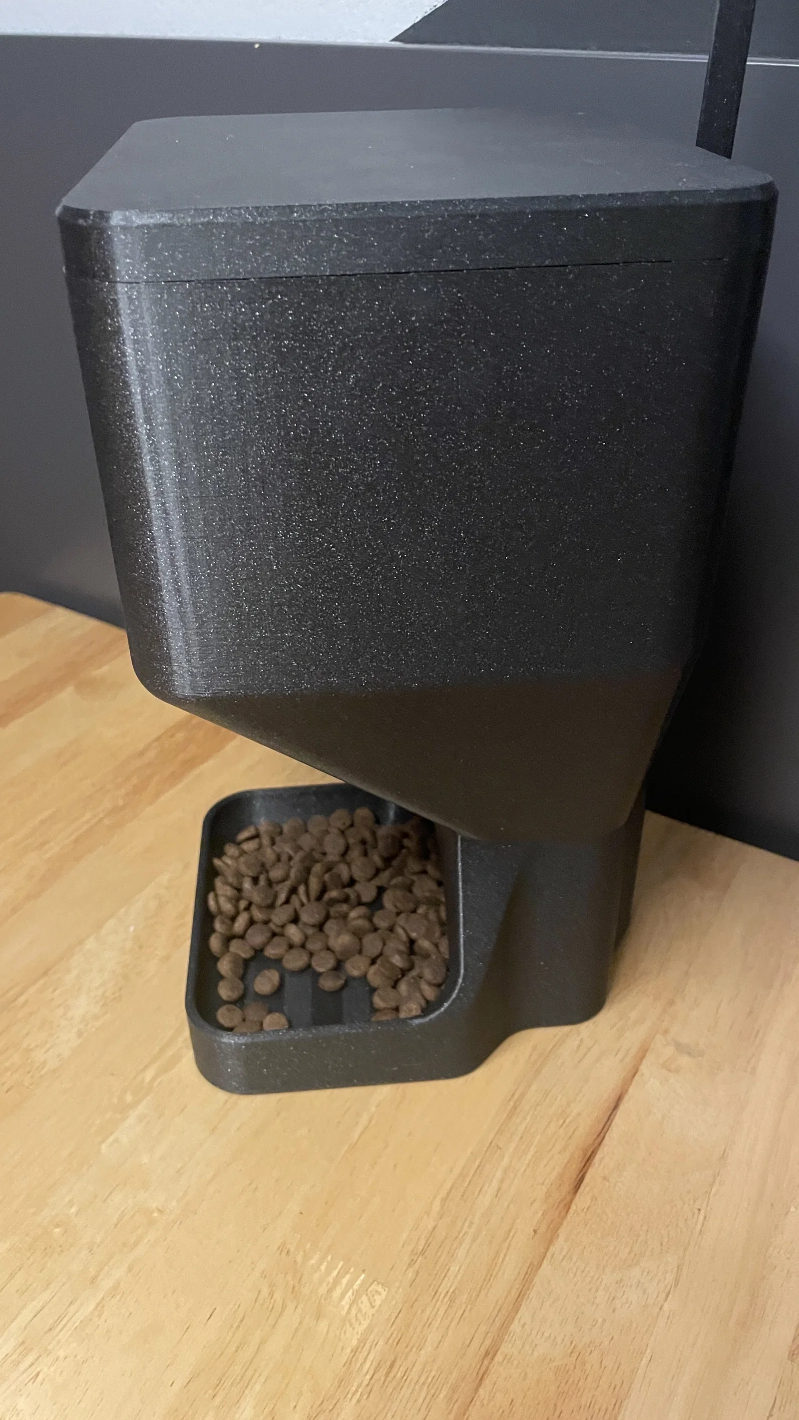 Mẫu cat feeder cỡ lớn dành cho mèo, hữu ích khi bạn vắng nhà vài ngày. Chỉ cần print và lắp ráp, không cần ốc vít hay linh kiện phụ. Có tuỳ chọn feet nhưng có thể không cần dùng.