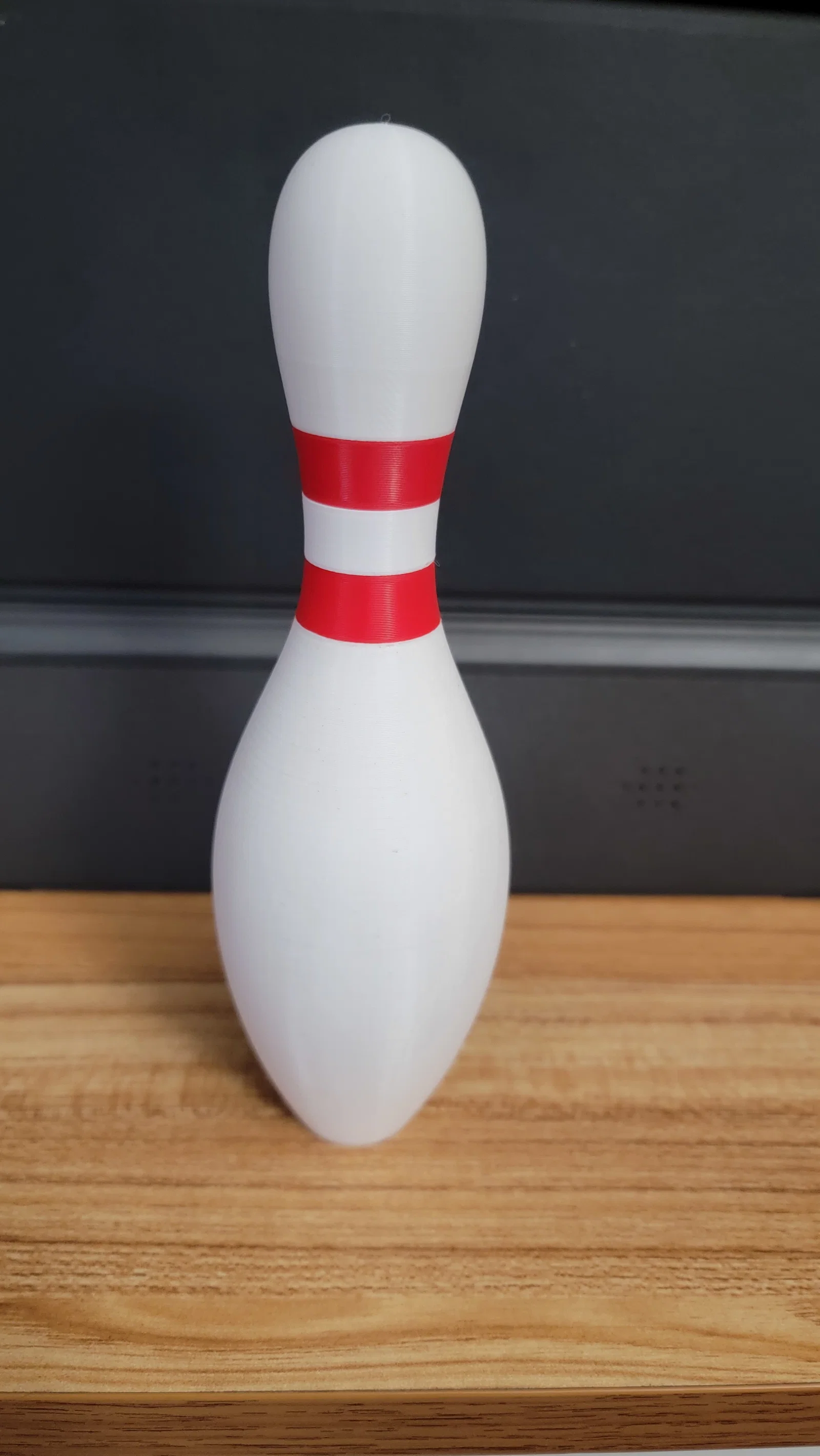 Mẫu Full Size Bowling Pin gồm 6 mảnh, có thể scale nhỏ lại. Gợi ý in 15% infill cho toàn bộ, riêng screw 100% infill; nếu muốn nặng đúng kiểu pin 1/2 scale thì tăng 65% infill phần đế. Hai vòng tách rời để in màu tùy thích.